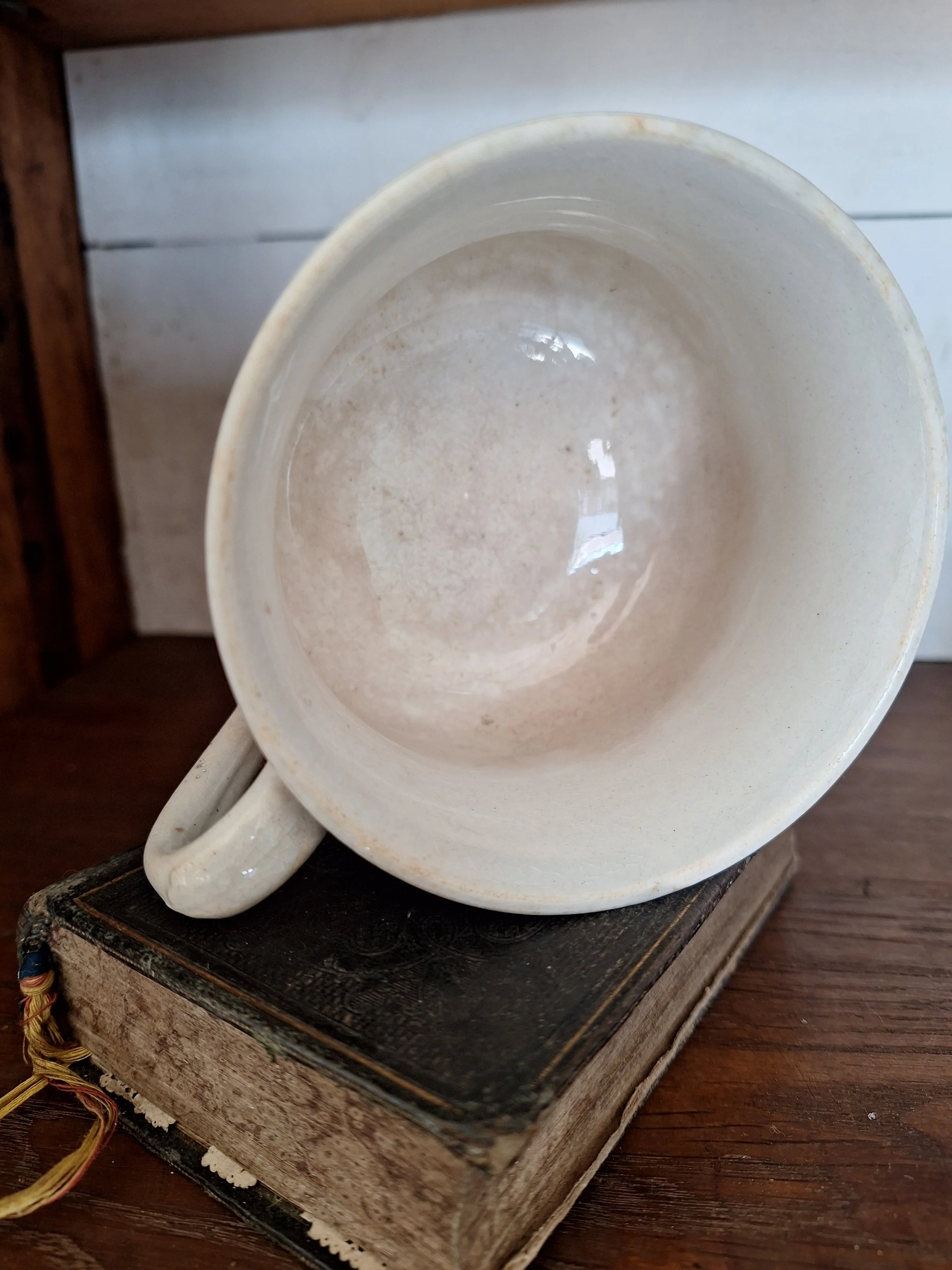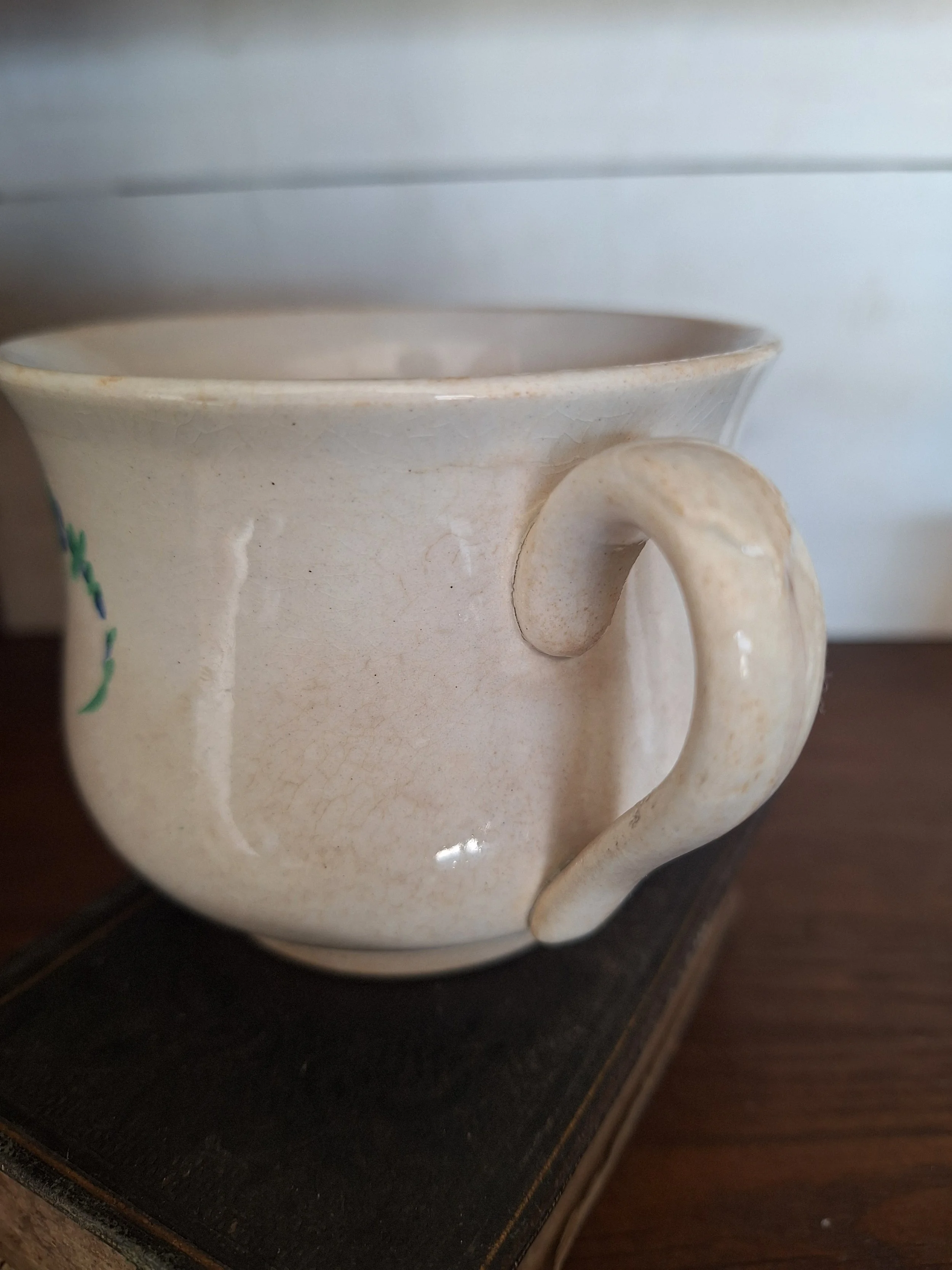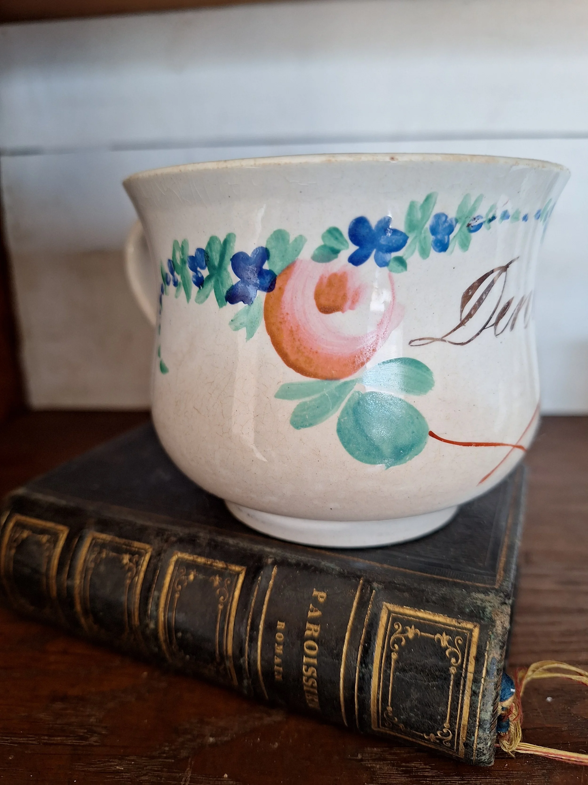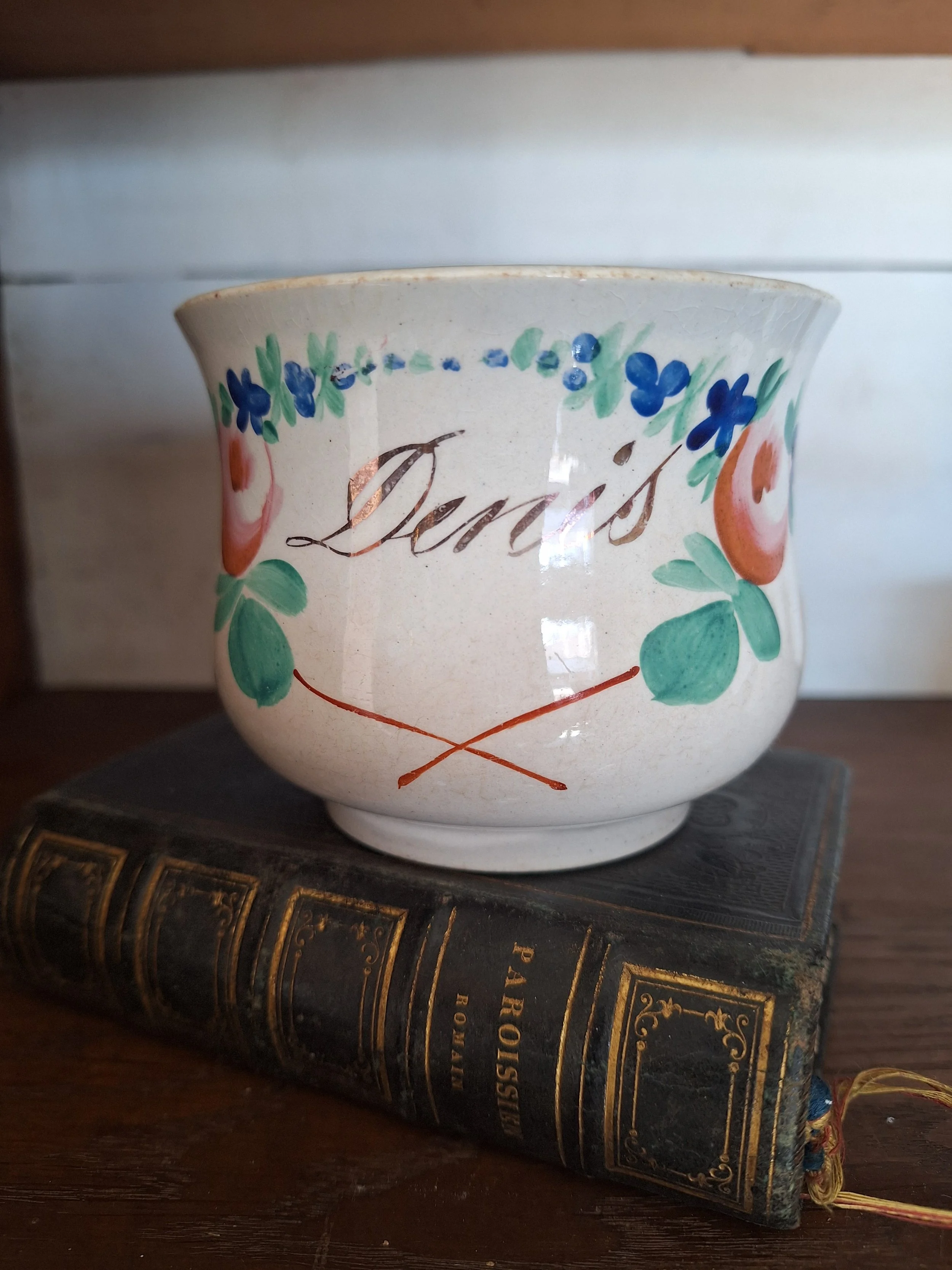 Sweet French painted cup, with some grazing and discolouration, lovely shape and handle. Height 7.5cm.