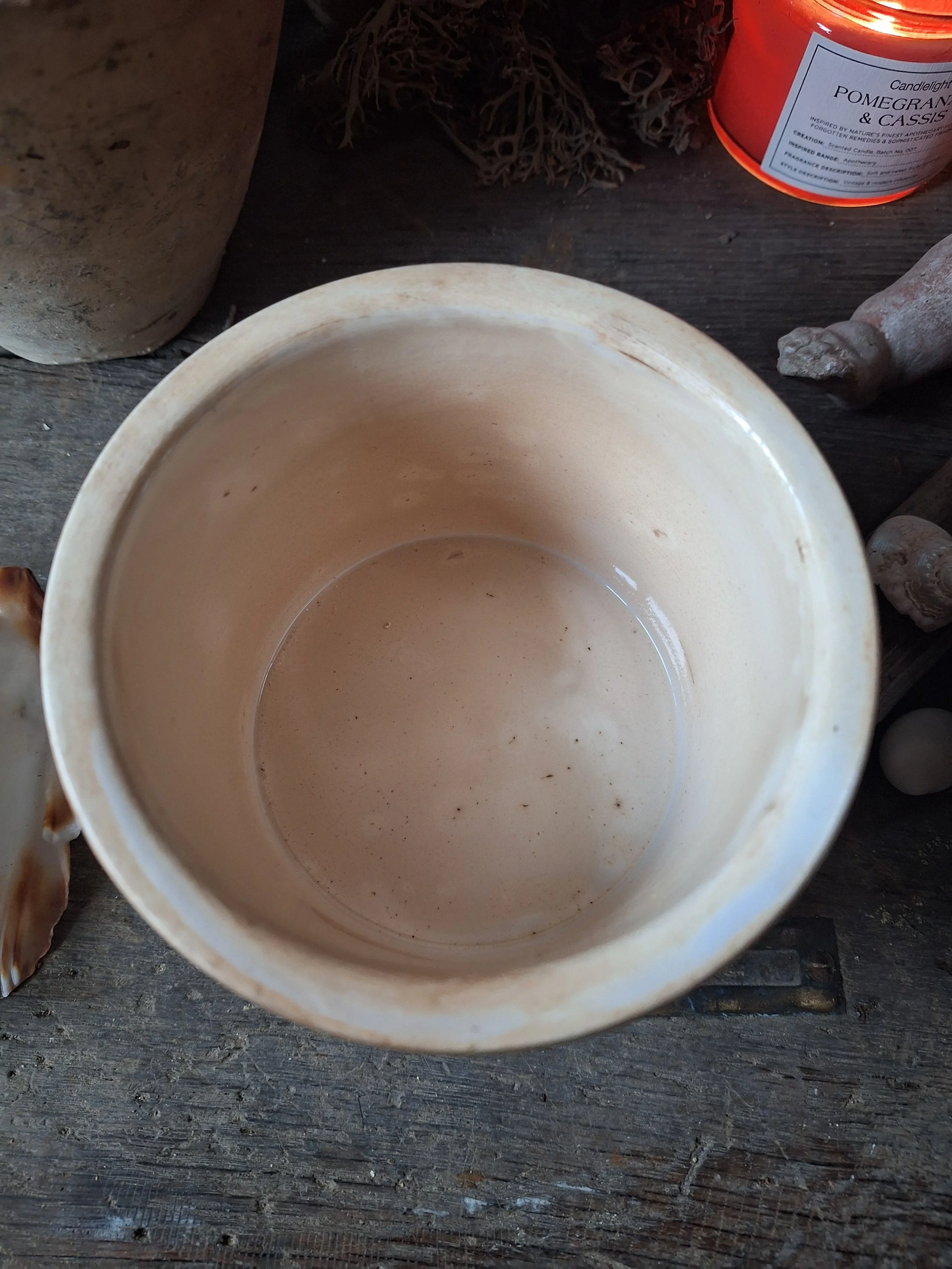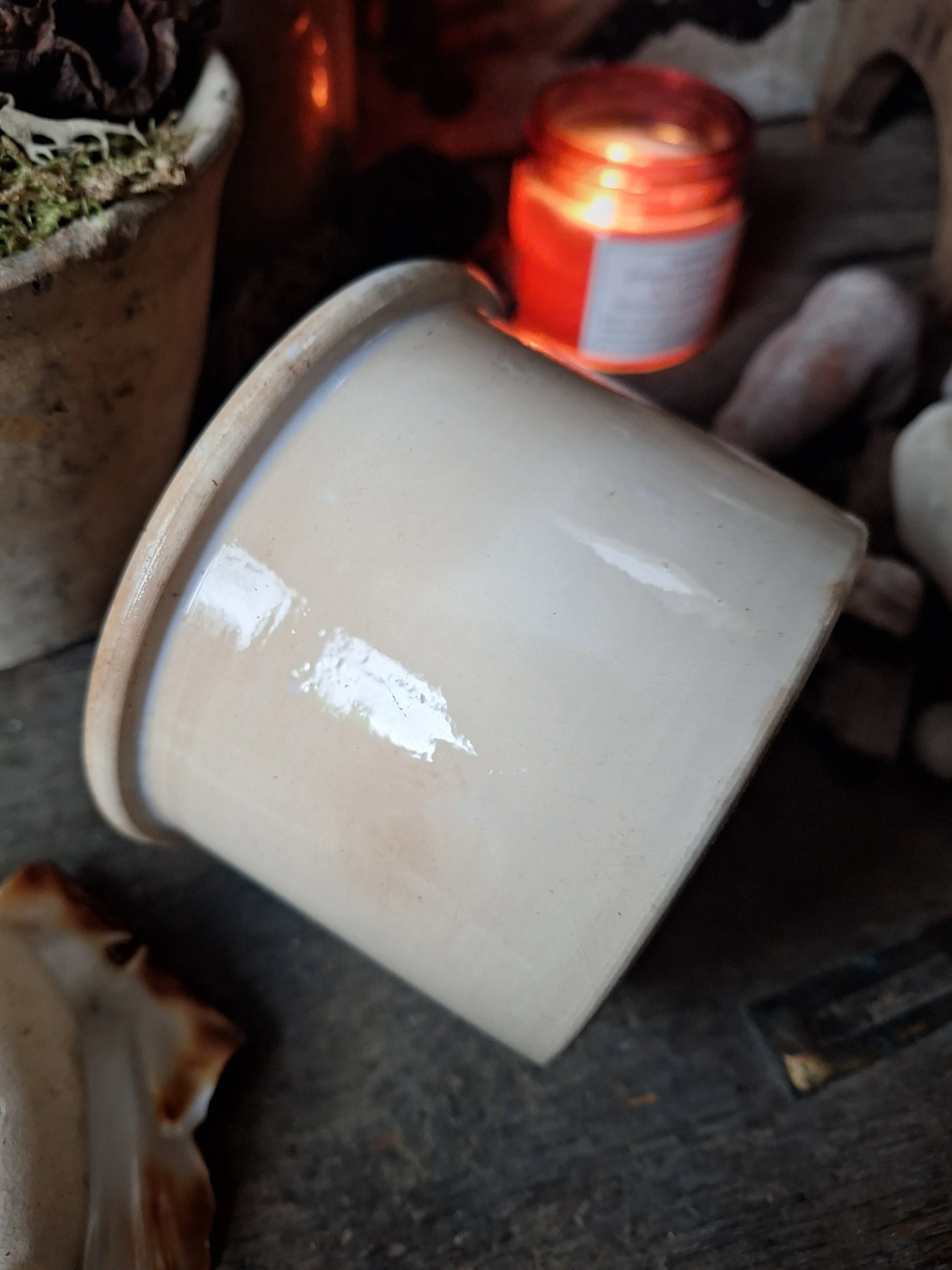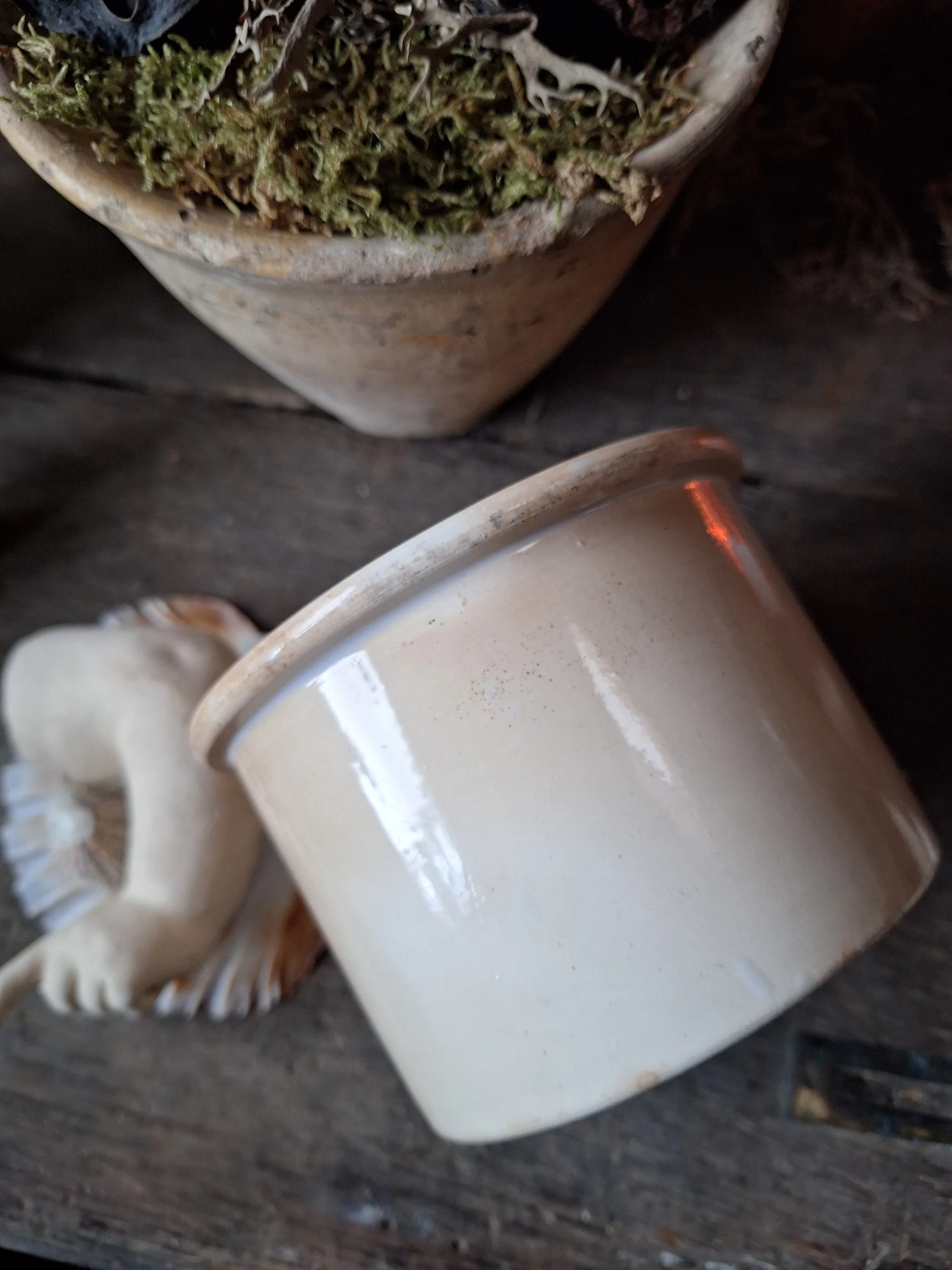 Lovely classic French pot with some discolouration. Height 8cm. Diameter 11.5cm.
