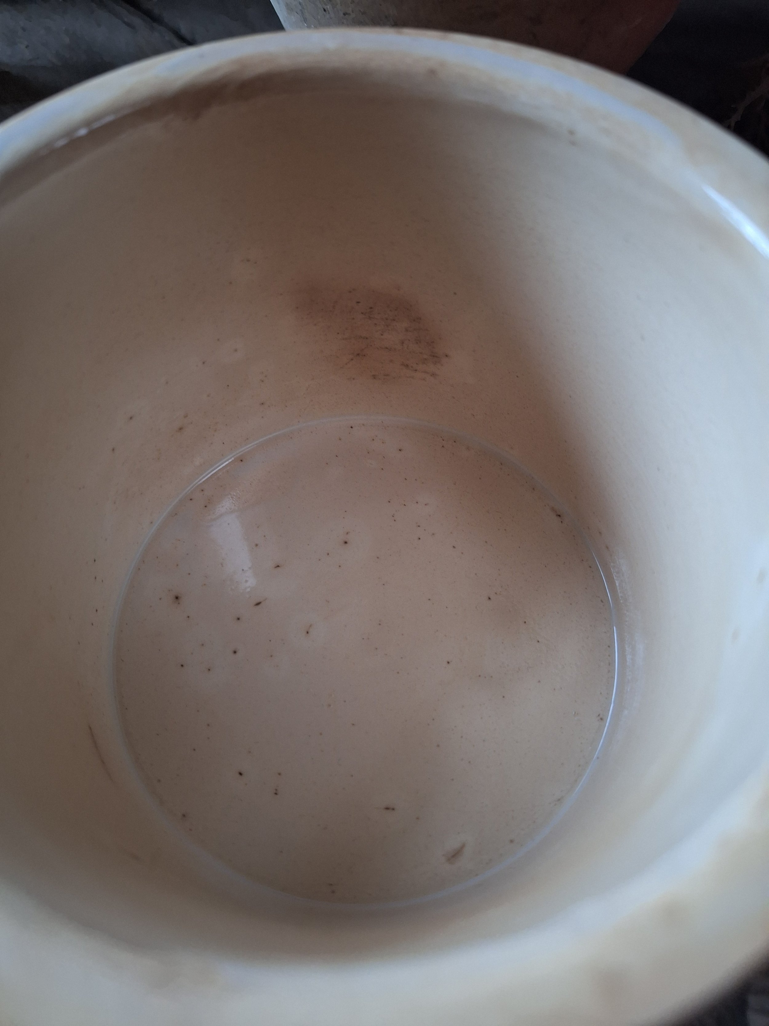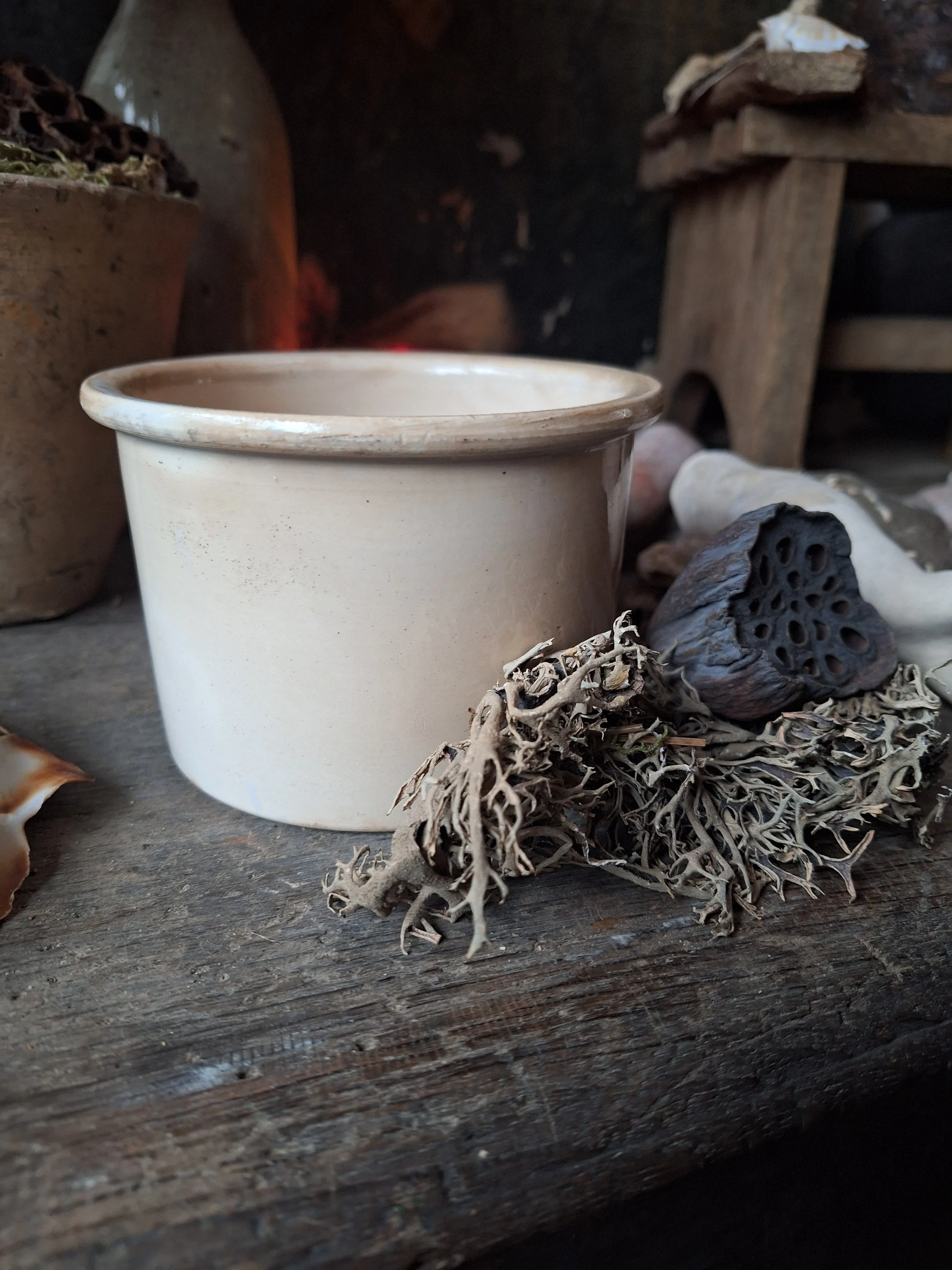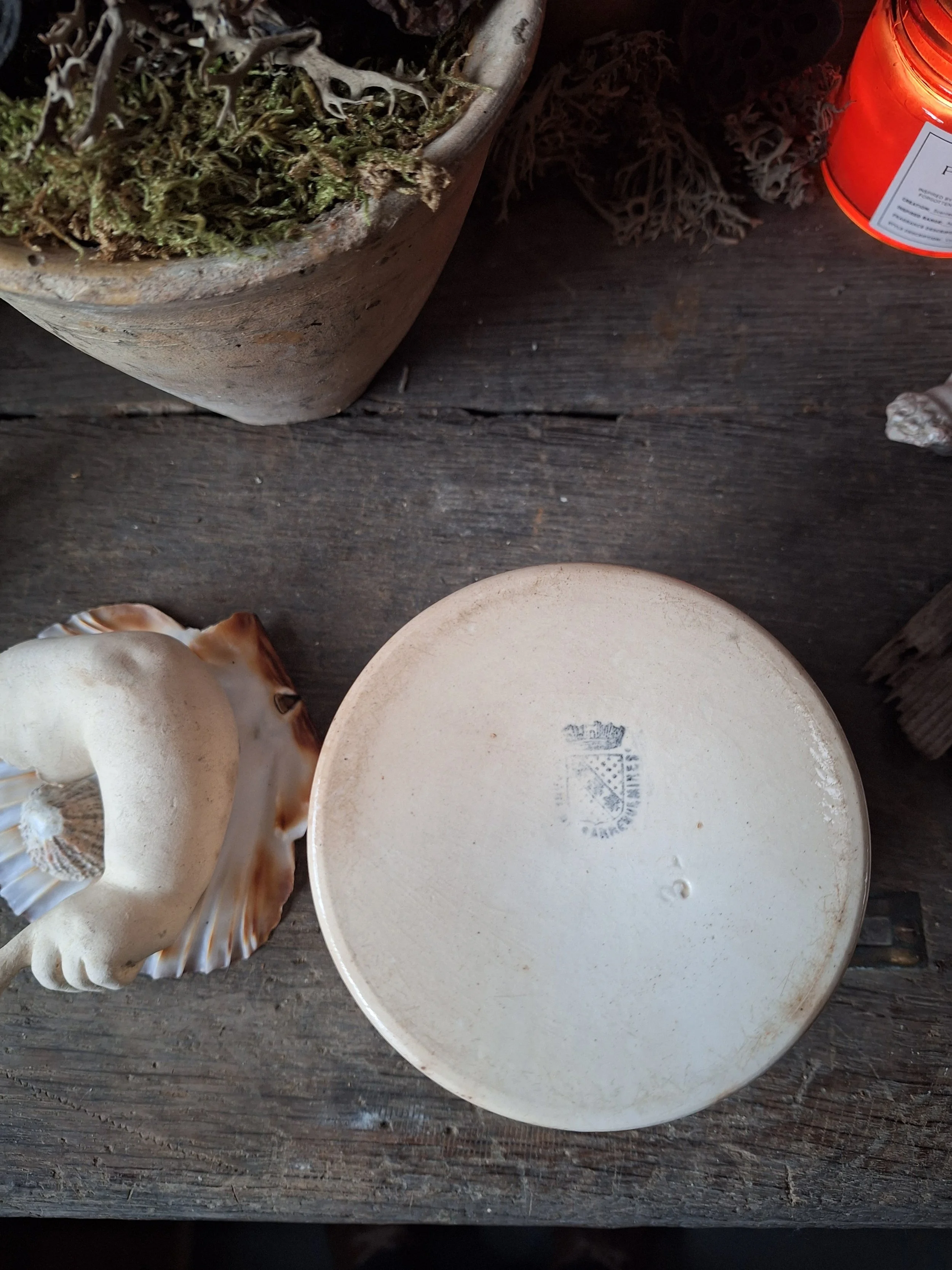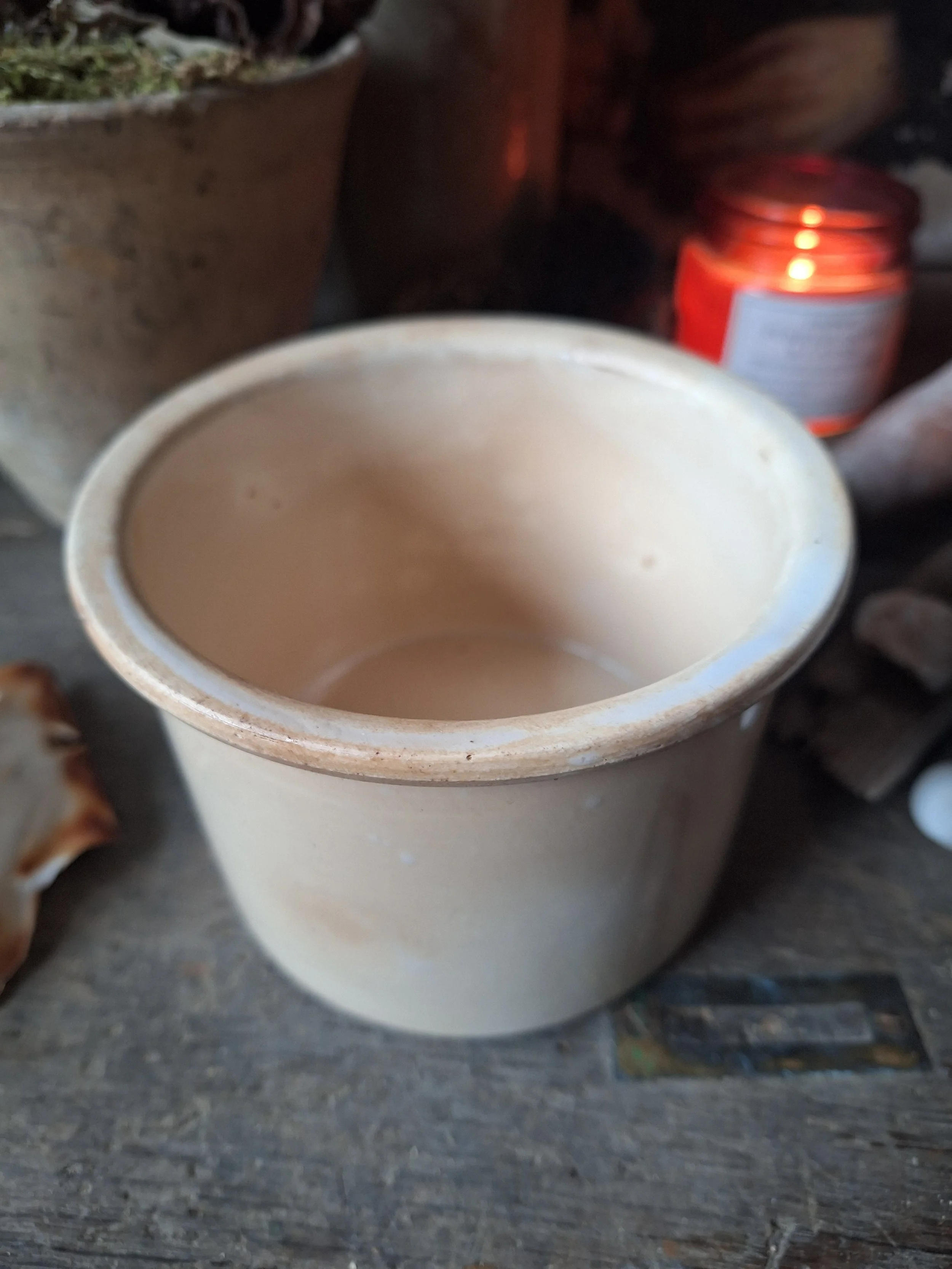 Lovely classic French pot with some discolouration. Height 8cm. Diameter 11.5cm.