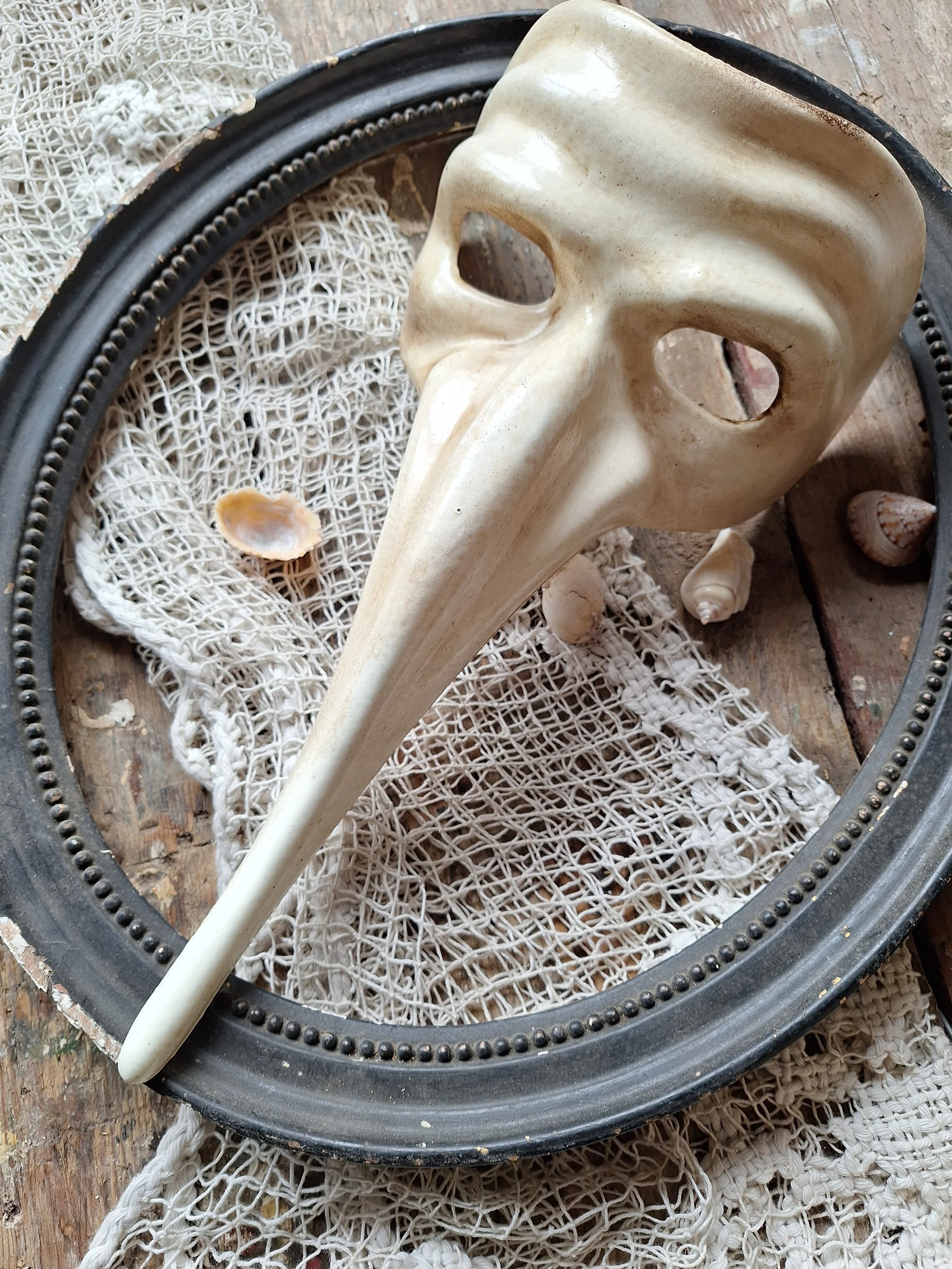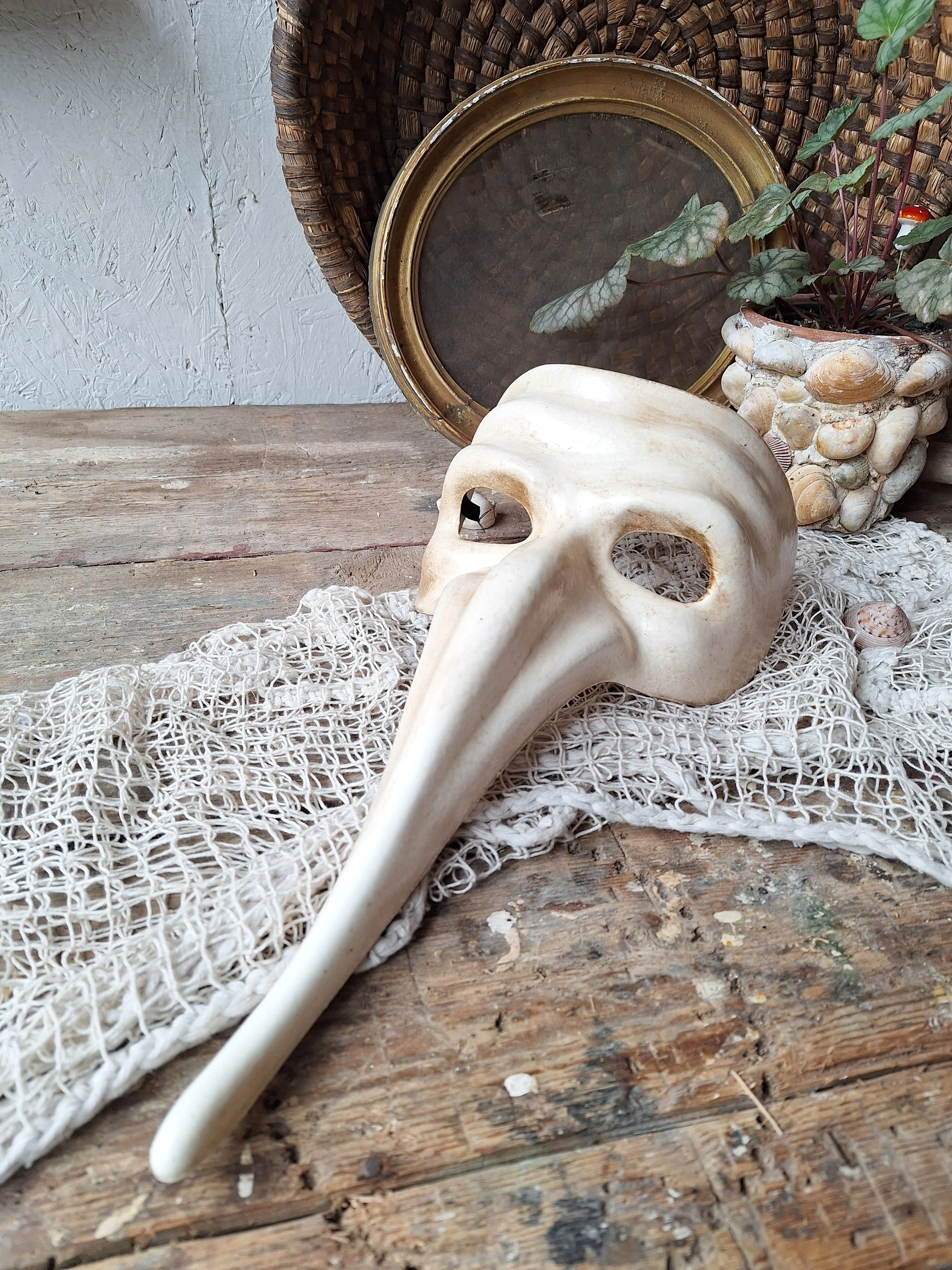 Venetian Mask. Great decorative item, no great age, but has a look. The cord is cut so will need to add some to hang it. Length of mask is 33cm depth 12cm.