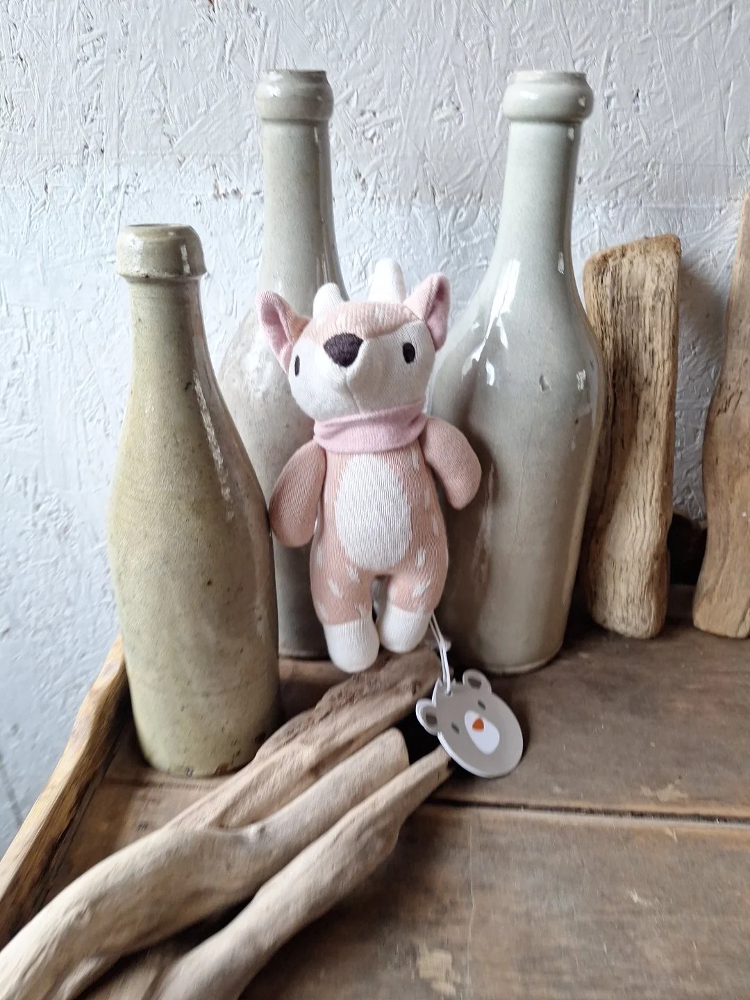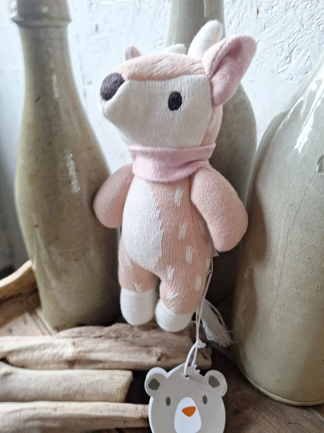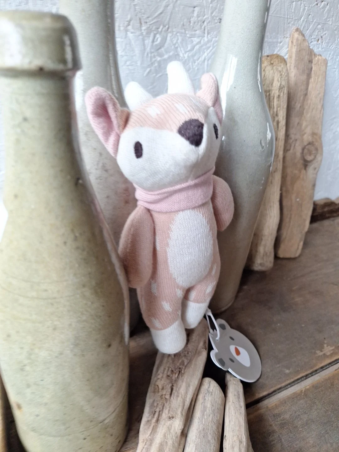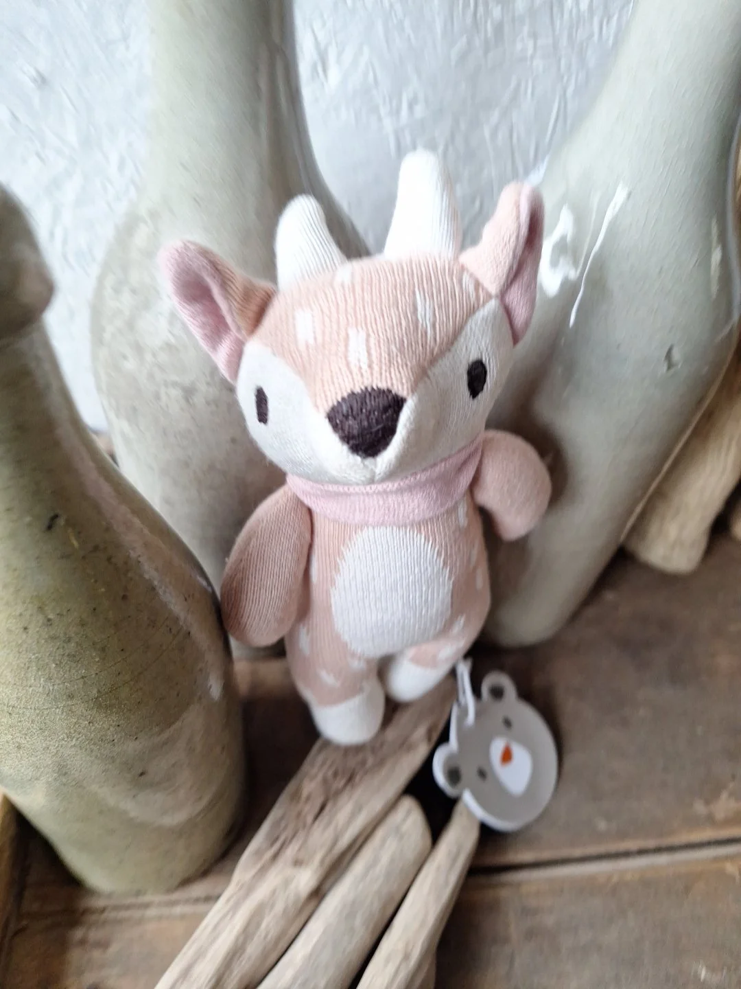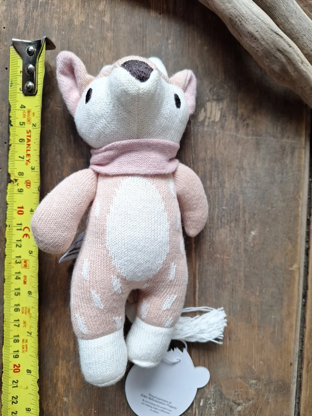 Forest-Themed Knitted Soft Deer Toy (Suitable from Birth) This gorgeous soft knitted Deer toy features a trendy forest-inspired design and is perfectly sized for little hands to hold and cuddle. Wonderfully soft and comforting, it makes a thoughtful gift for babies and young children, and a charming addition to the nursery, cot, or pram for everyday cuddles and soothing comfort. Beautifully made with care, this timeless knitted toy is designed to support early bonding, comfort, and sensory development. ๐ ๐๐๐ญ๐ฎ๐ซ๐๐ฌ: โข Soft knitted toy with a forest-inspired theme โข Perfectly sized for little hands to grasp and cuddle โข Gentle and comforting for newborns and babies โข Ideal for nurseries, cots, and prams Suitable from birth Product Size: 11 ร 5 ร 18 cm Suitable for: Birth+ Designed in the UK with values of: โข LIVING โ celebrating thoughtful design and comforting home experiences โข LEARNING โ supporting early sensory development and emotional bonding โข LEGACY โ crafted for longevity, quality, and responsible design A beautifully soft, forest-themed companion offering comfort, cuddles, and timeless style from the very beginning.
