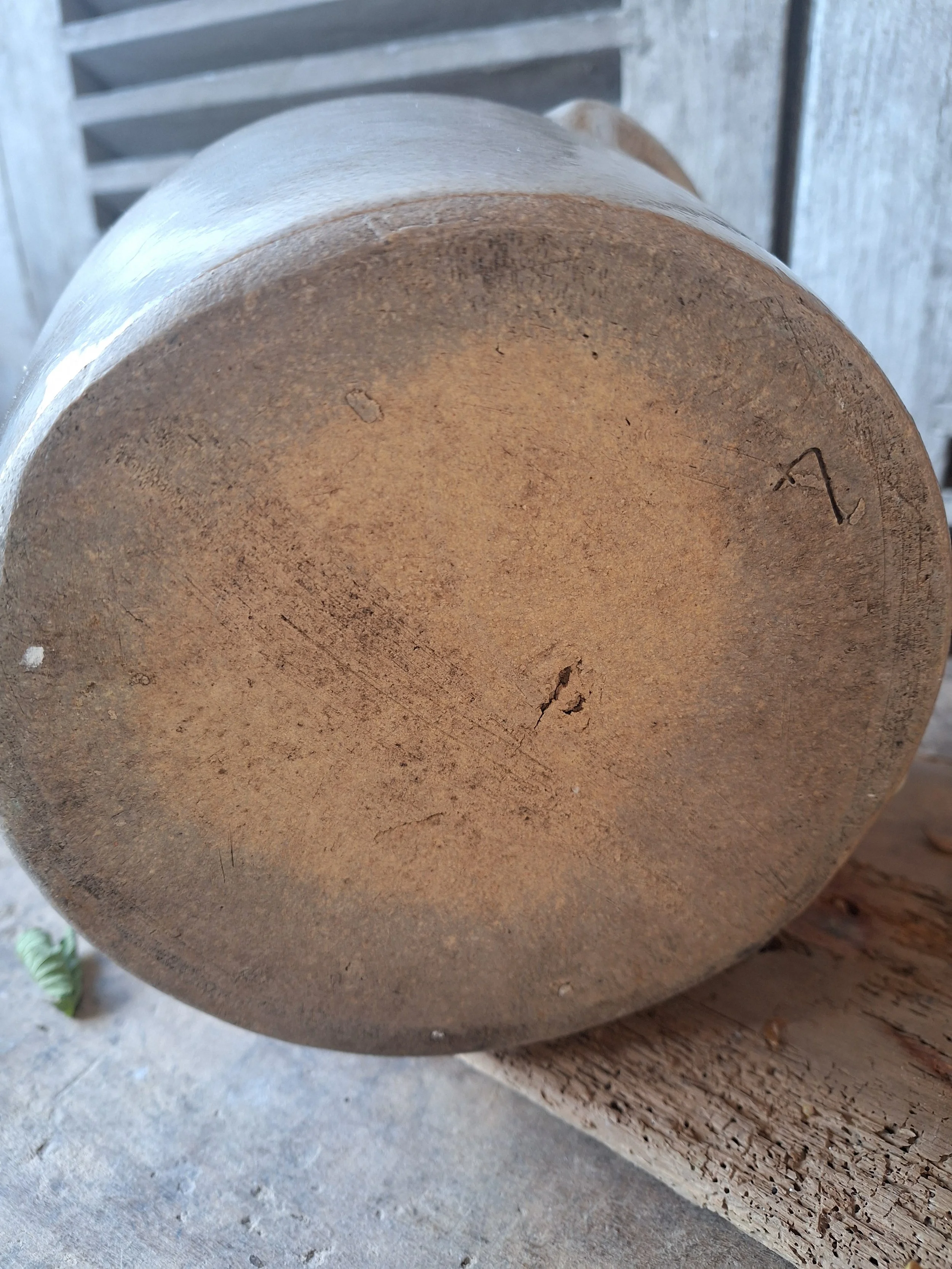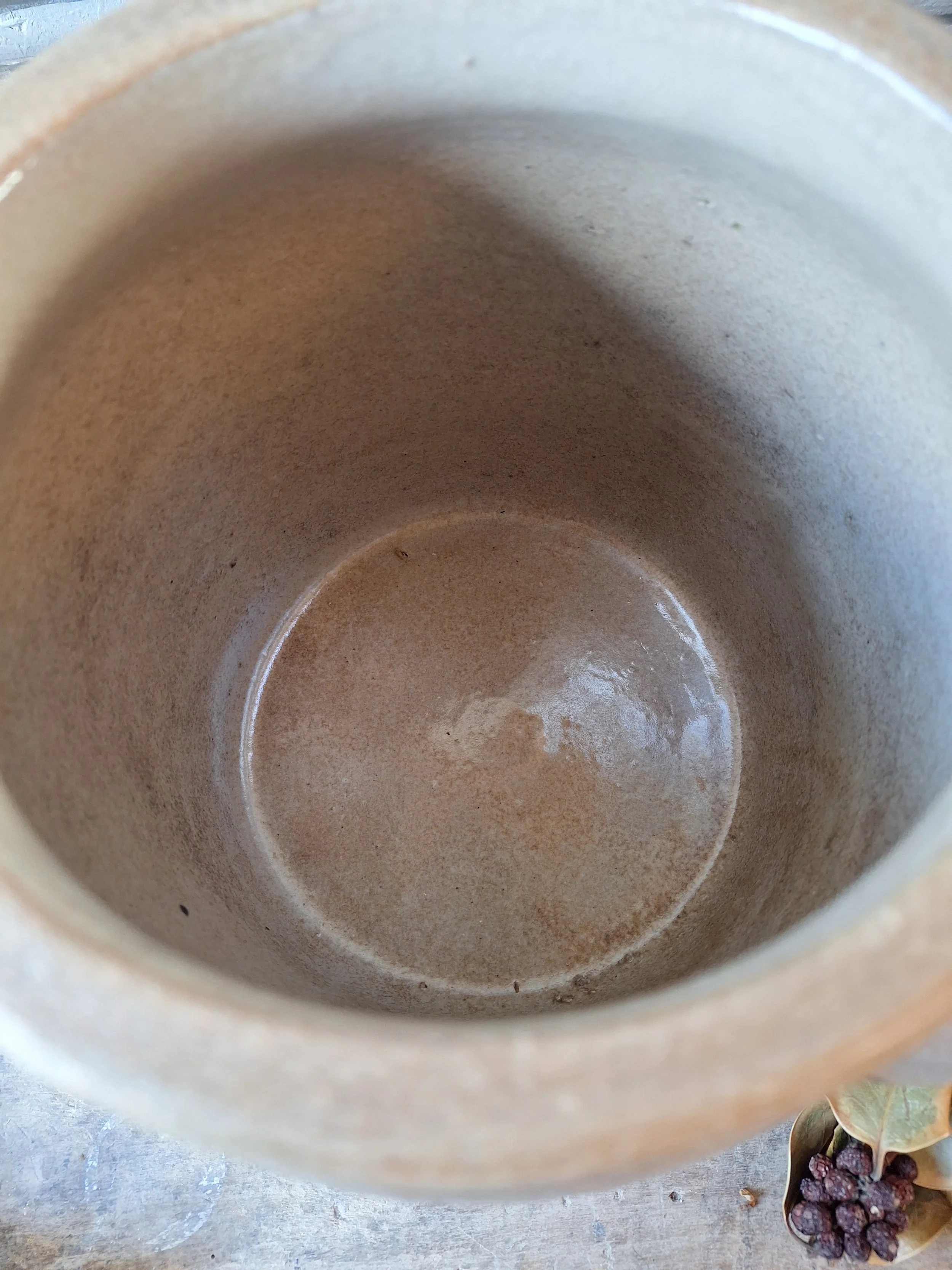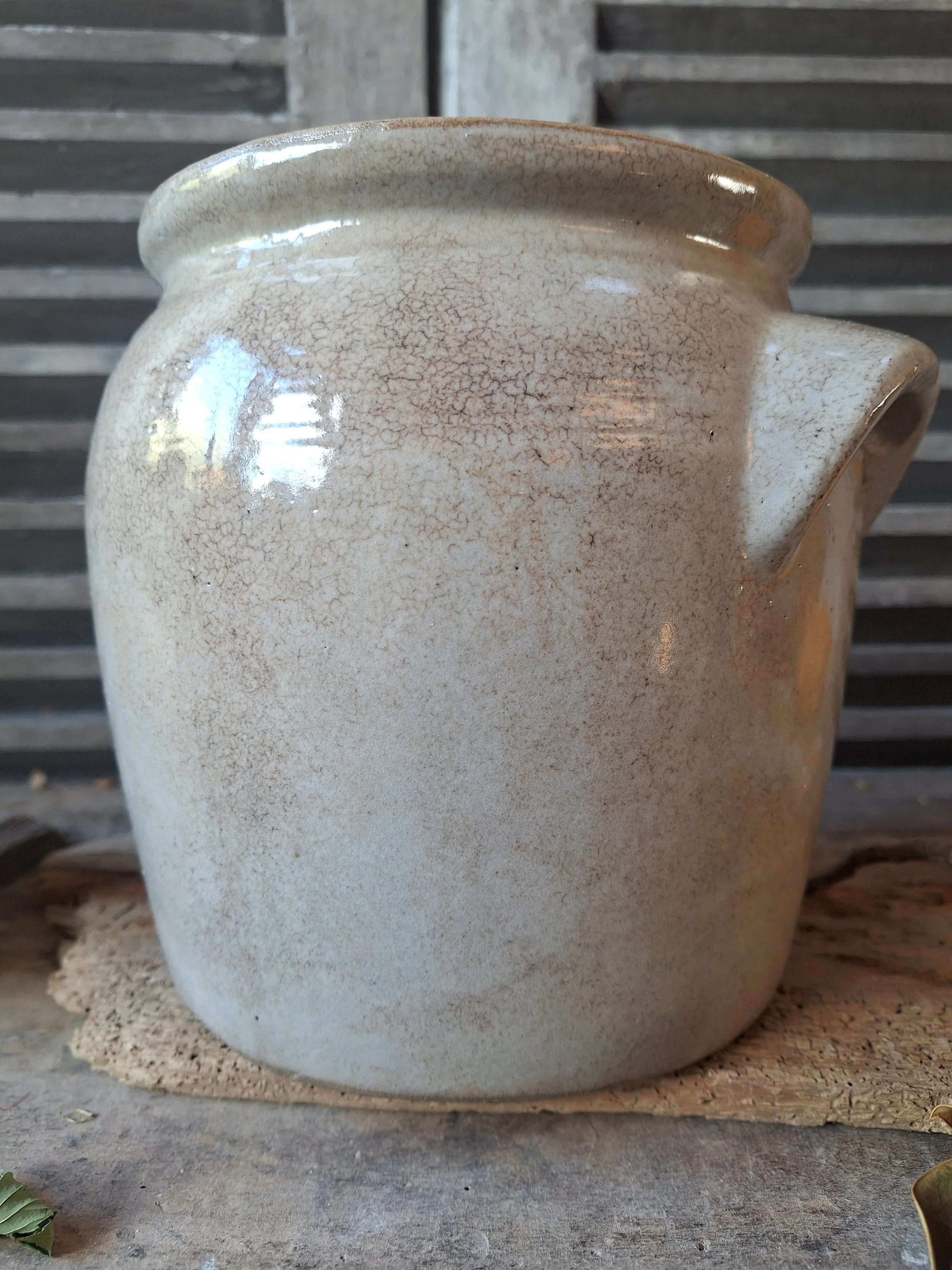 Classic confit with grey glaze. Good condition. 19cm tall.