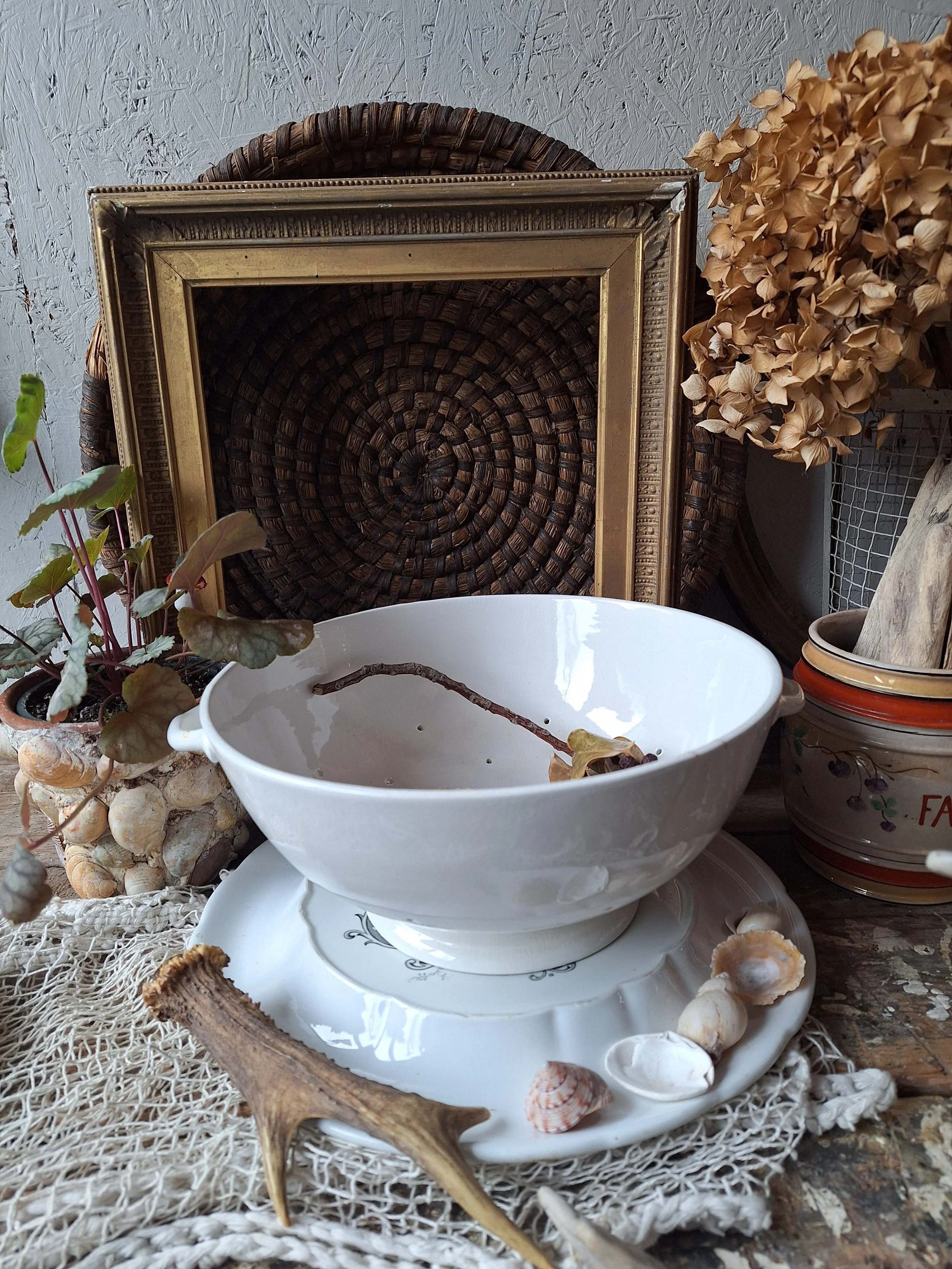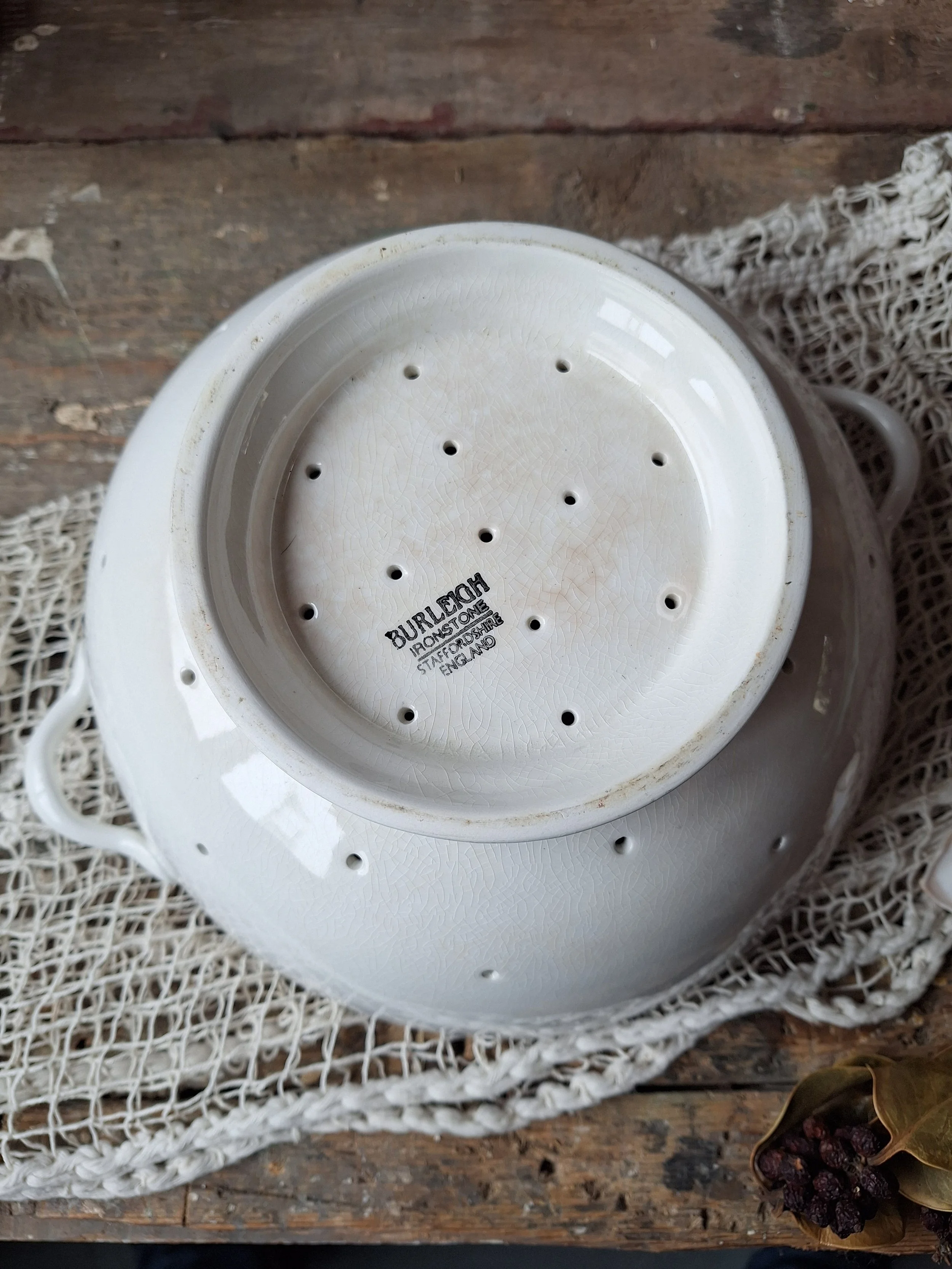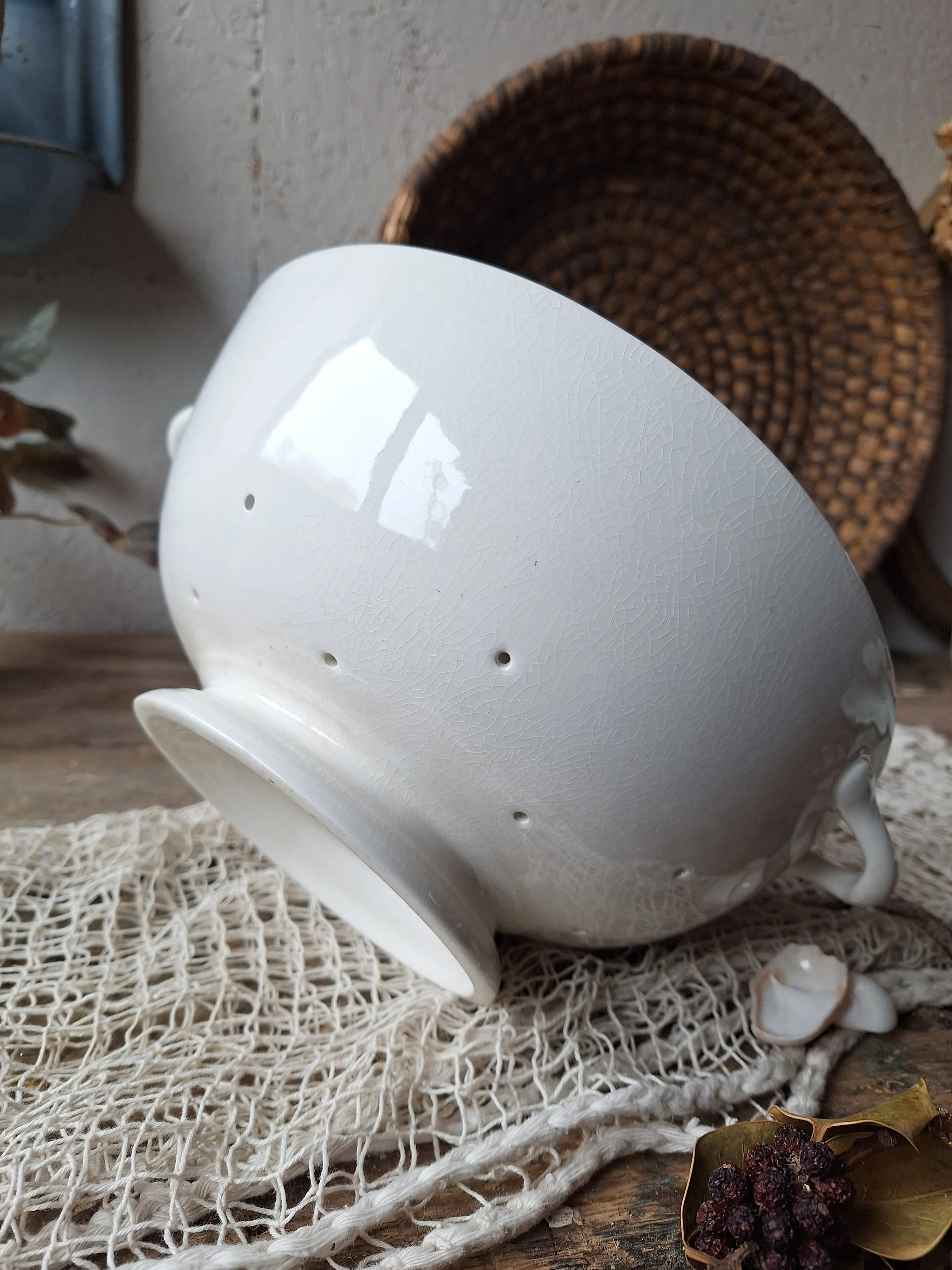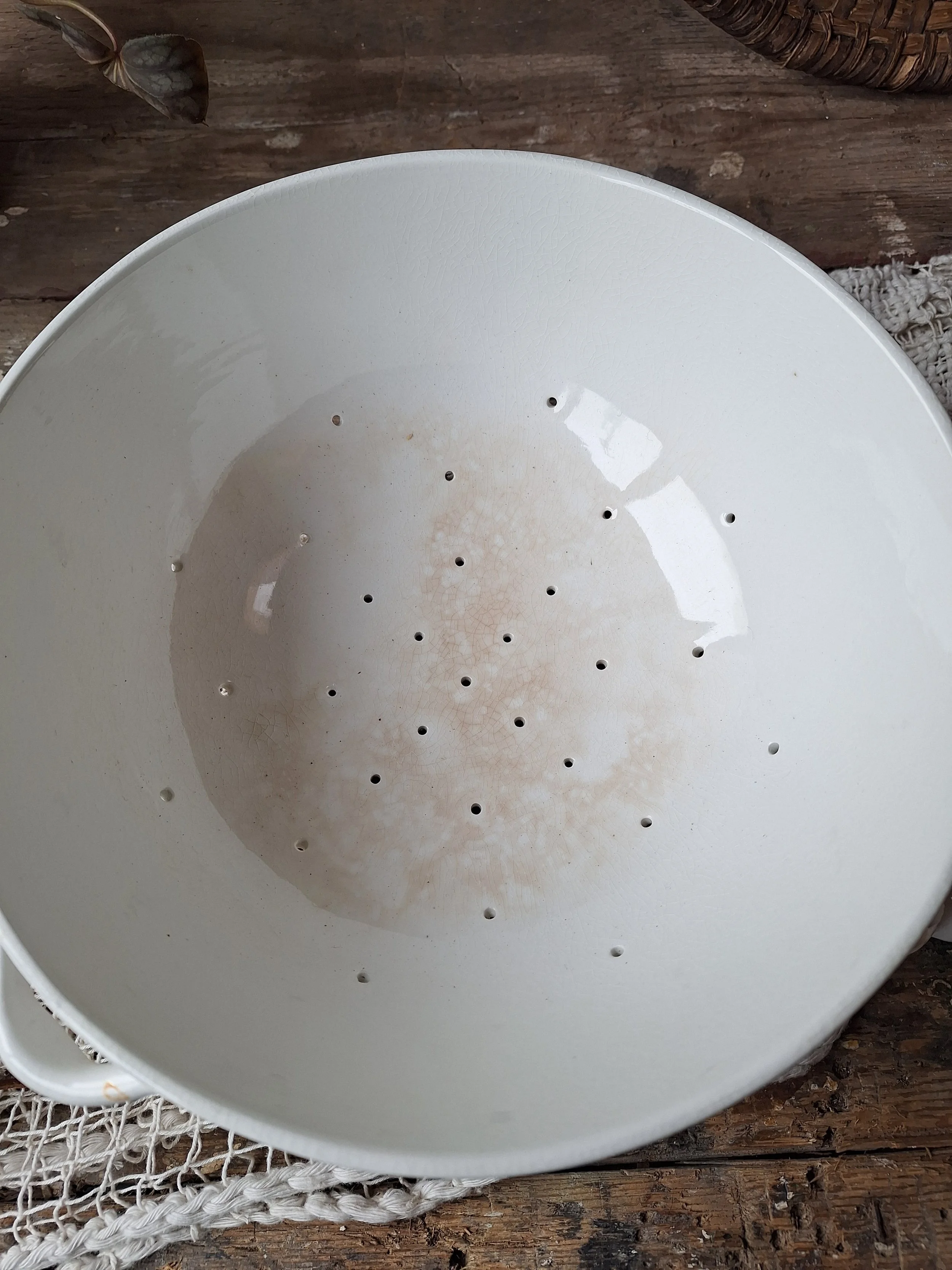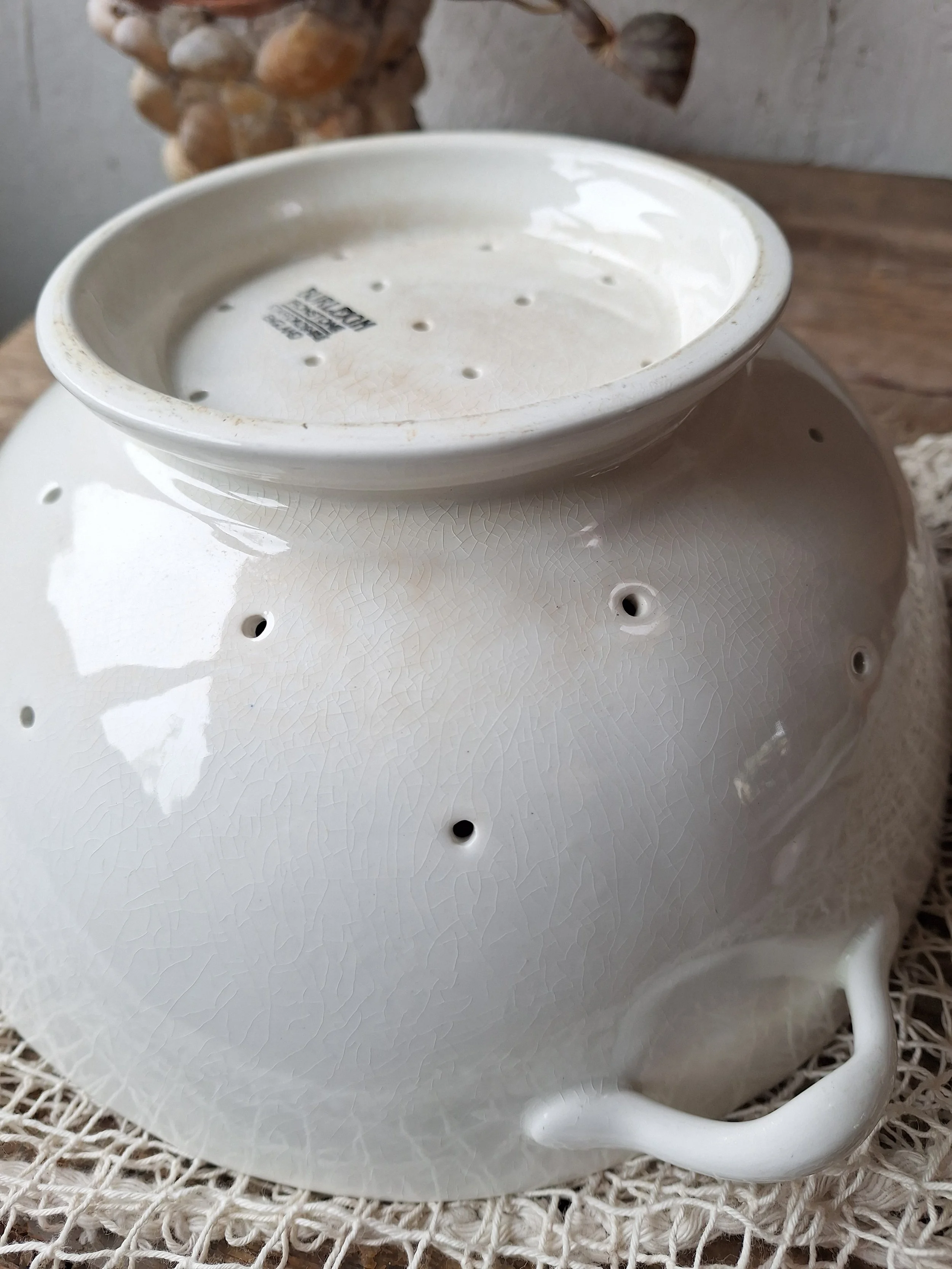 Lovely classic white drainer, some discolouration. Width of bowl 23cm and height 11cm.