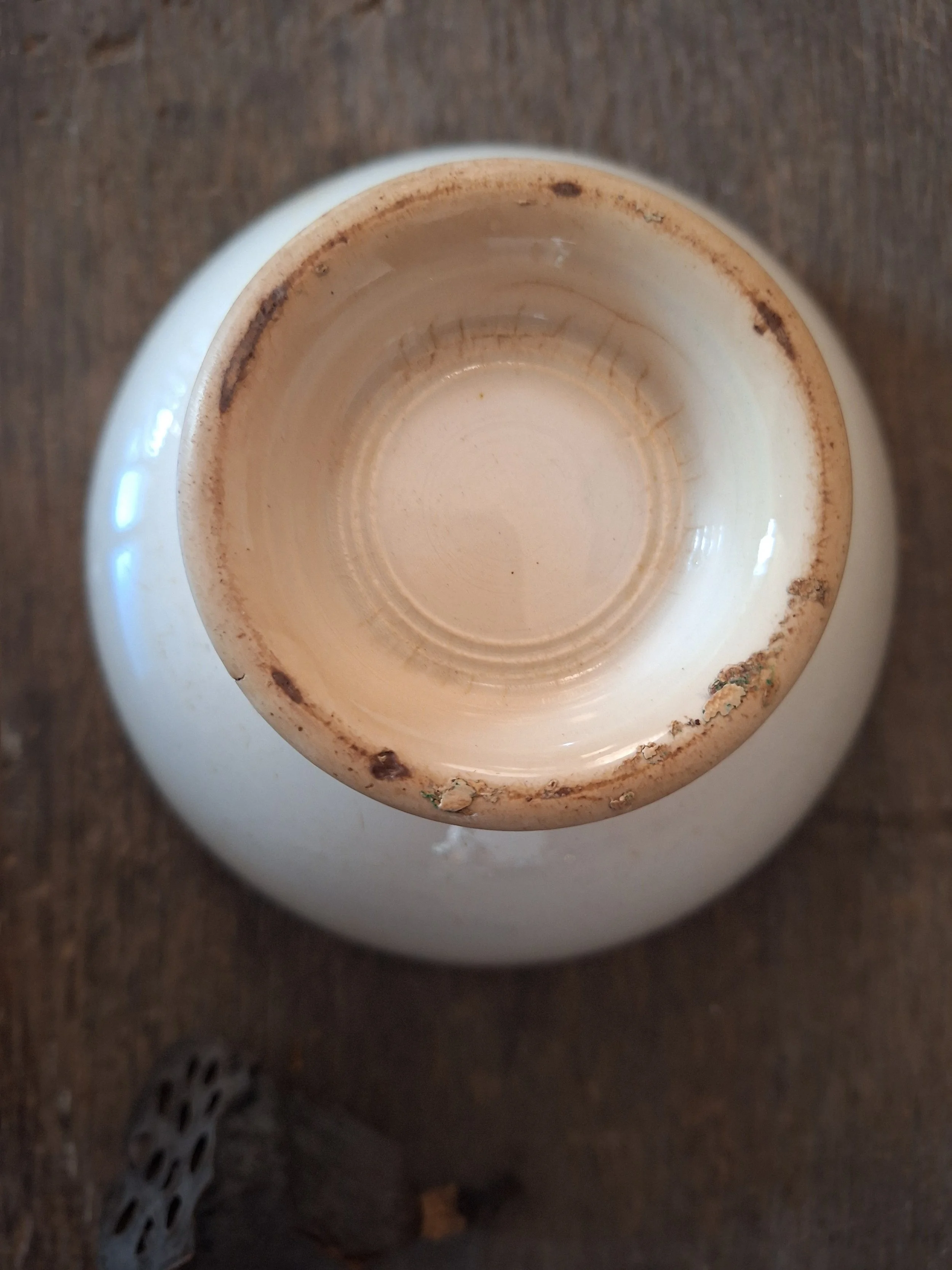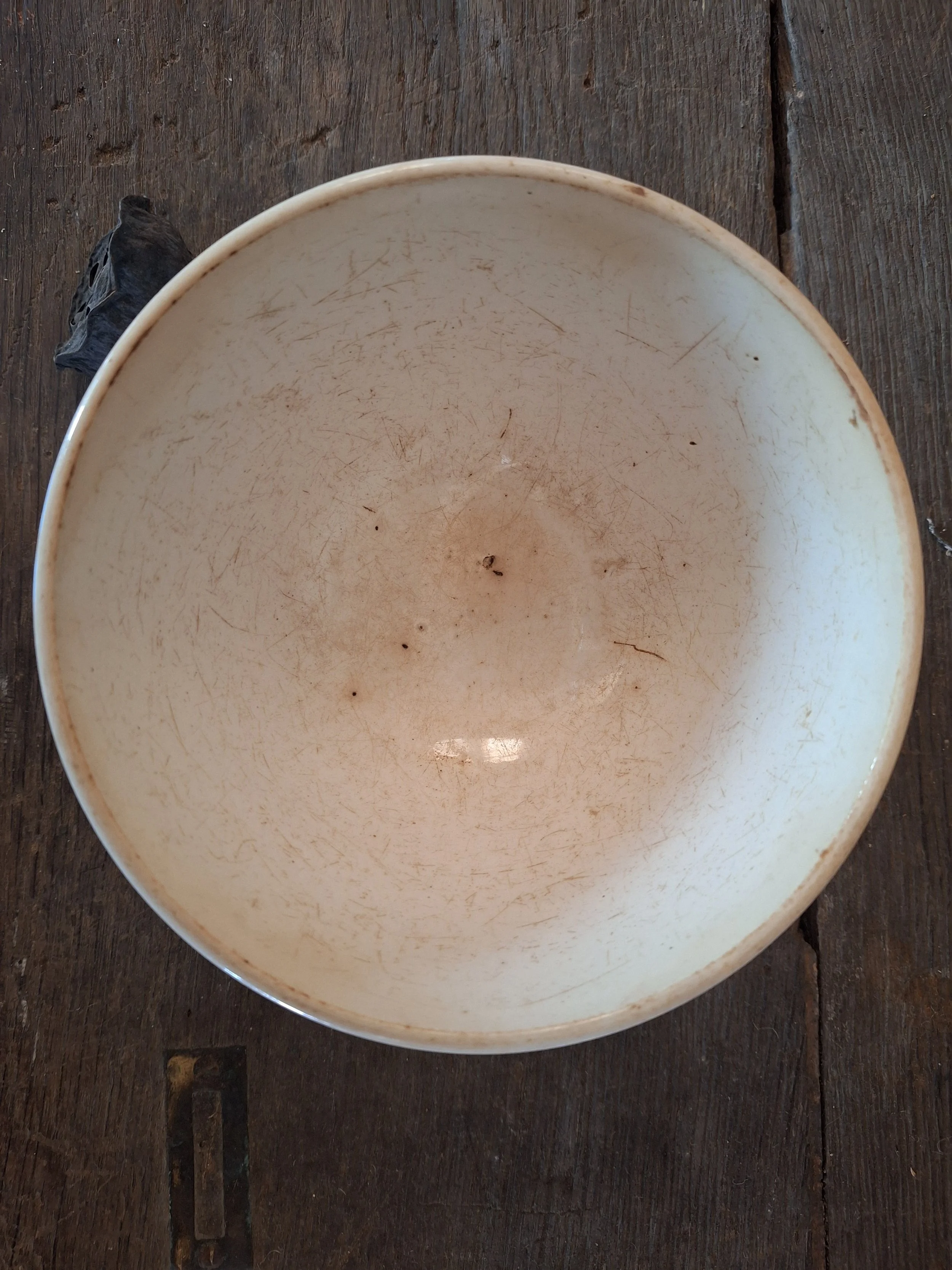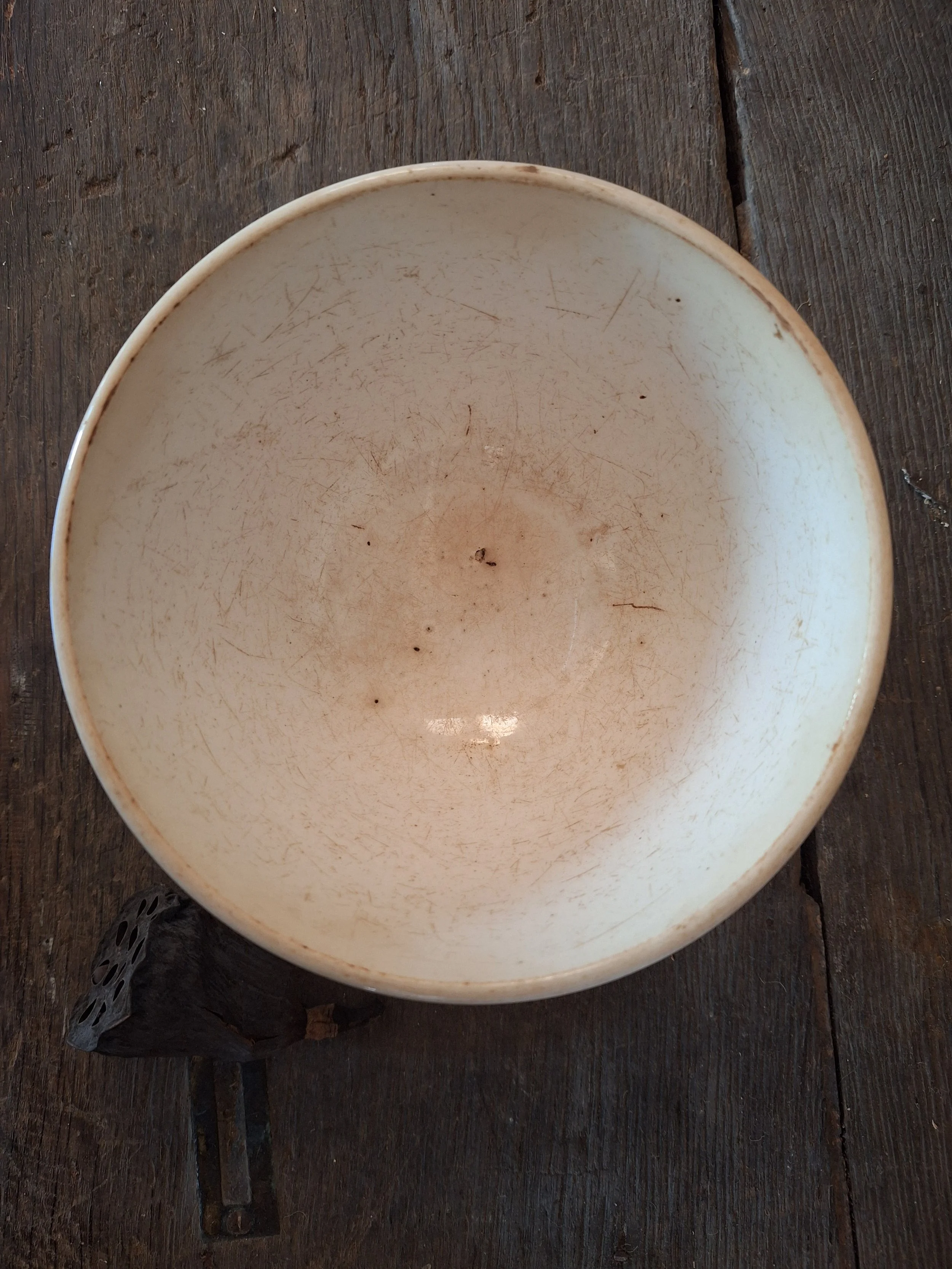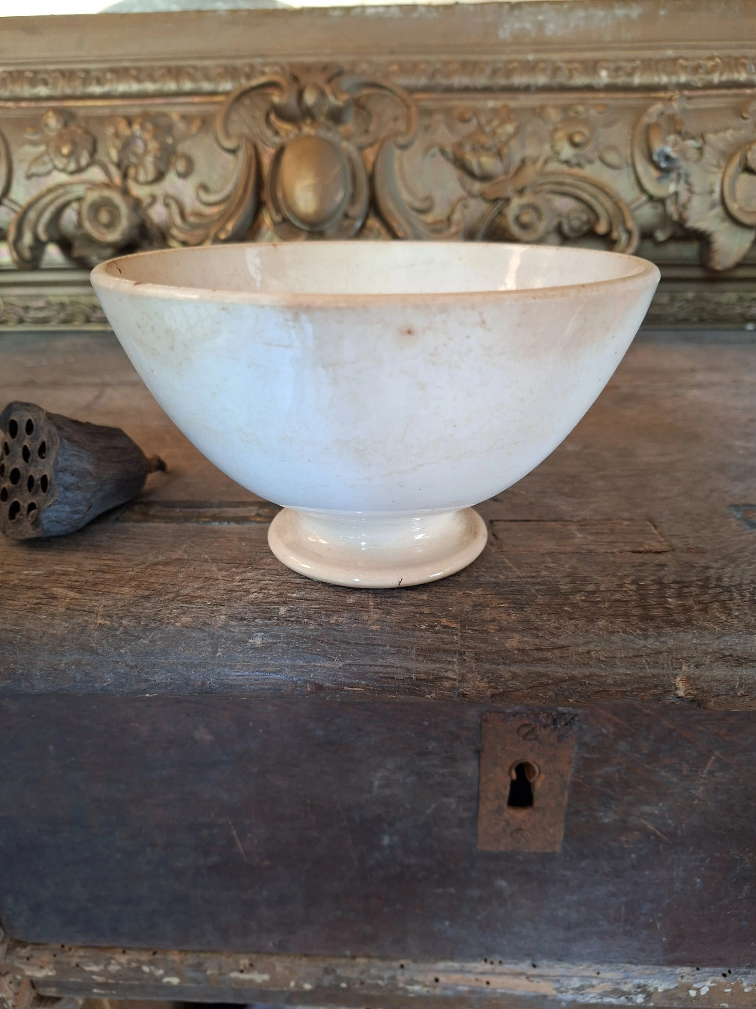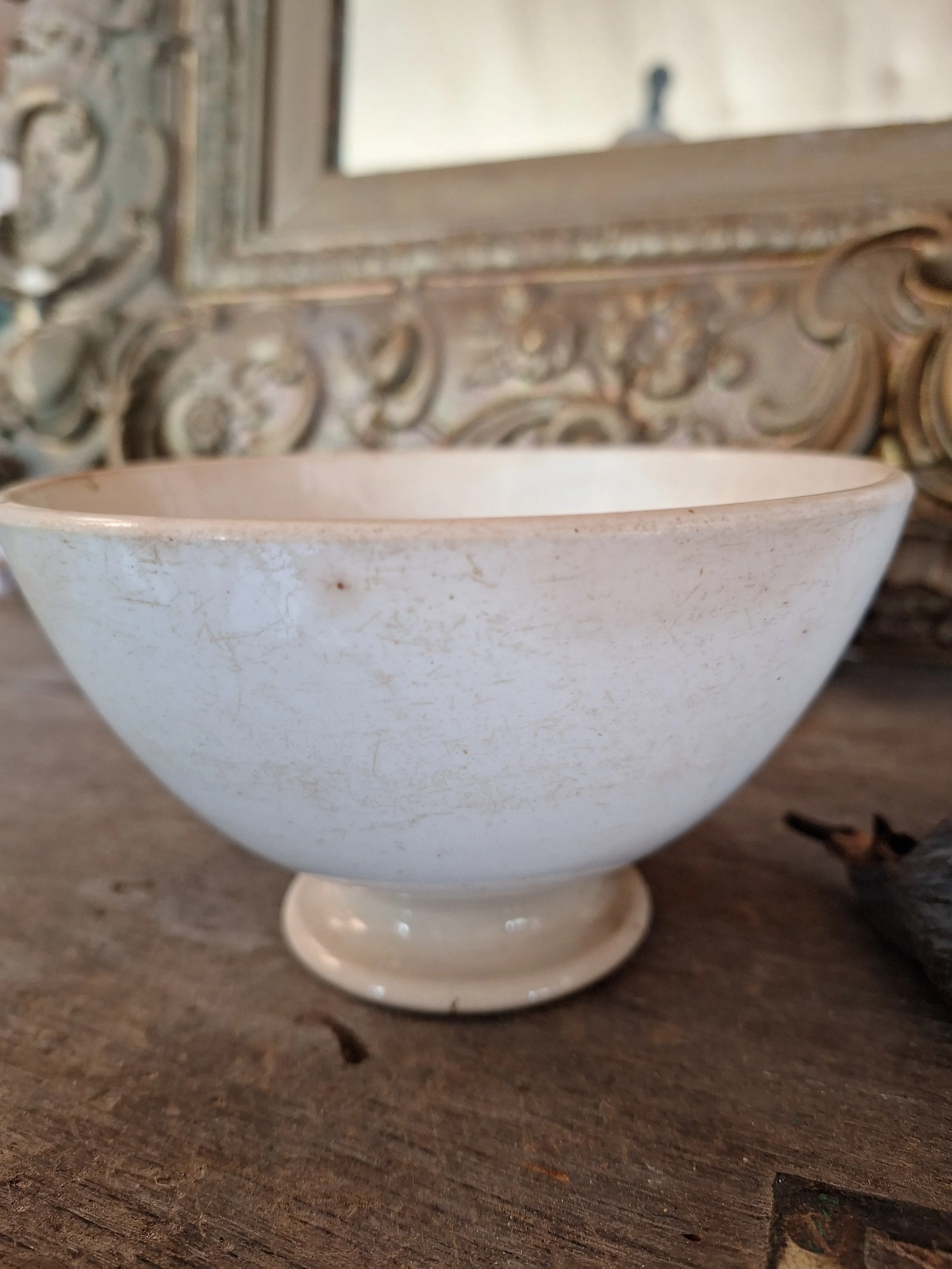 Lovely little cafe bowl, off white colour, some discolouration. Height 8cm and diameter 14cm.
