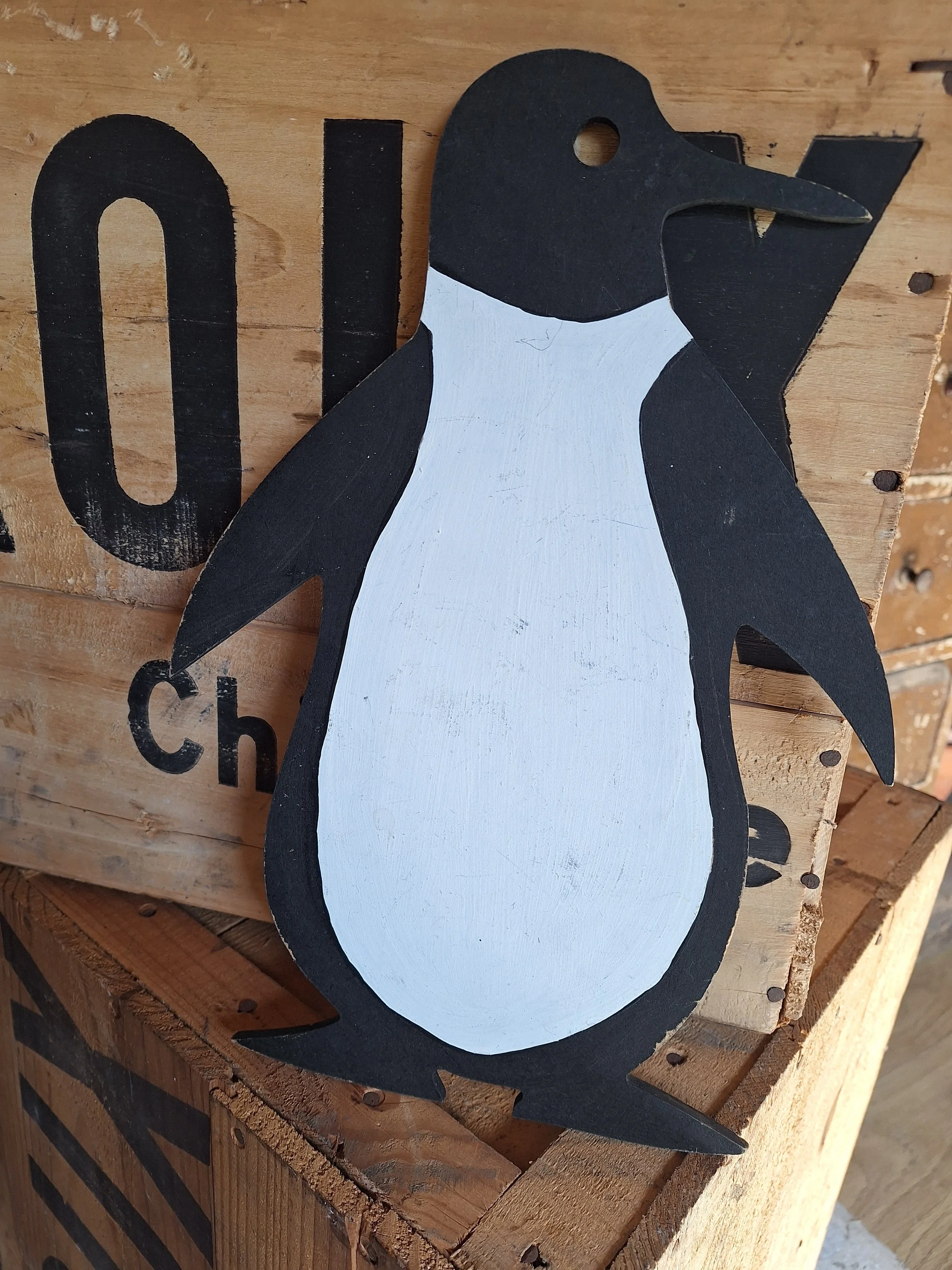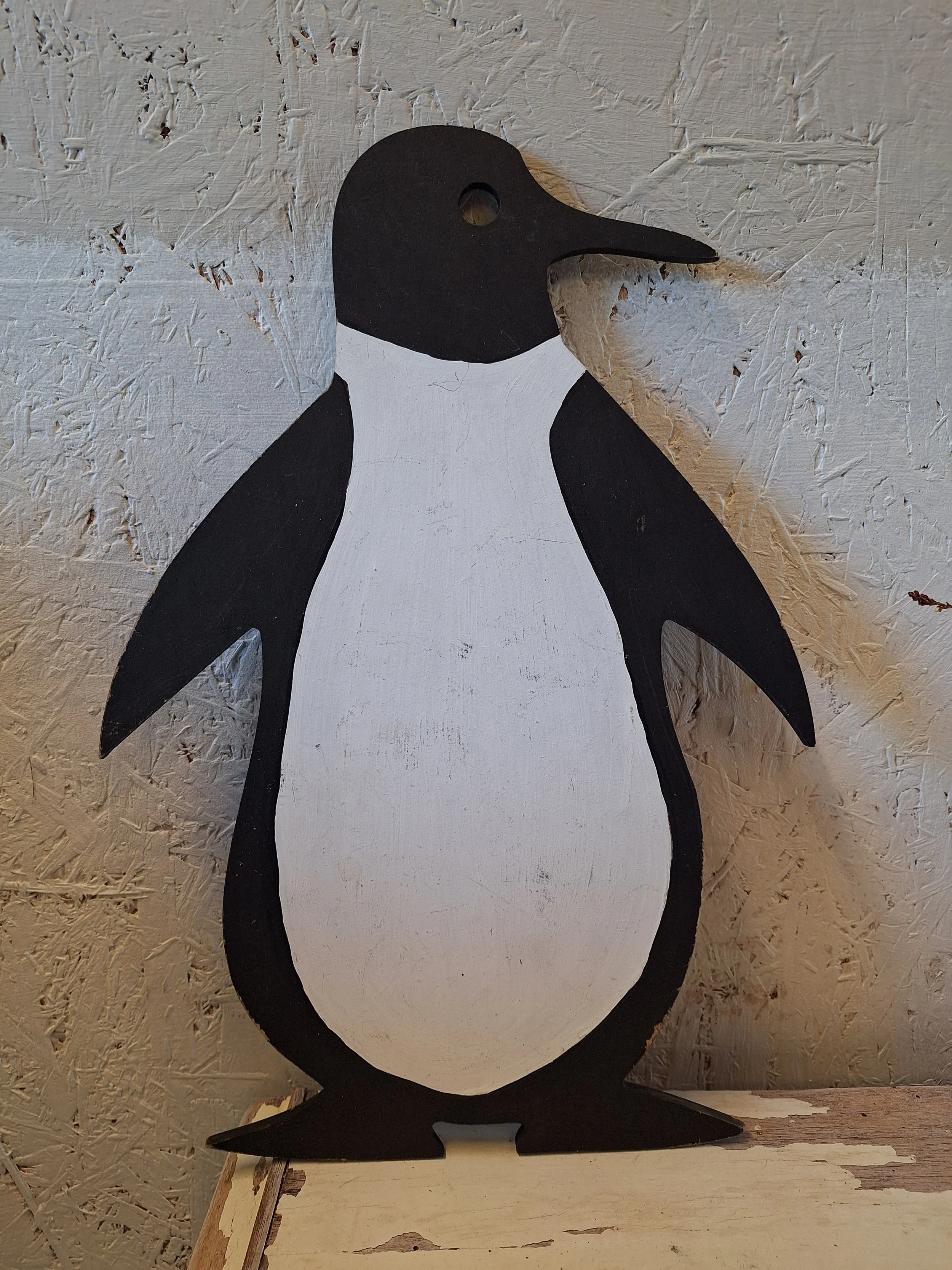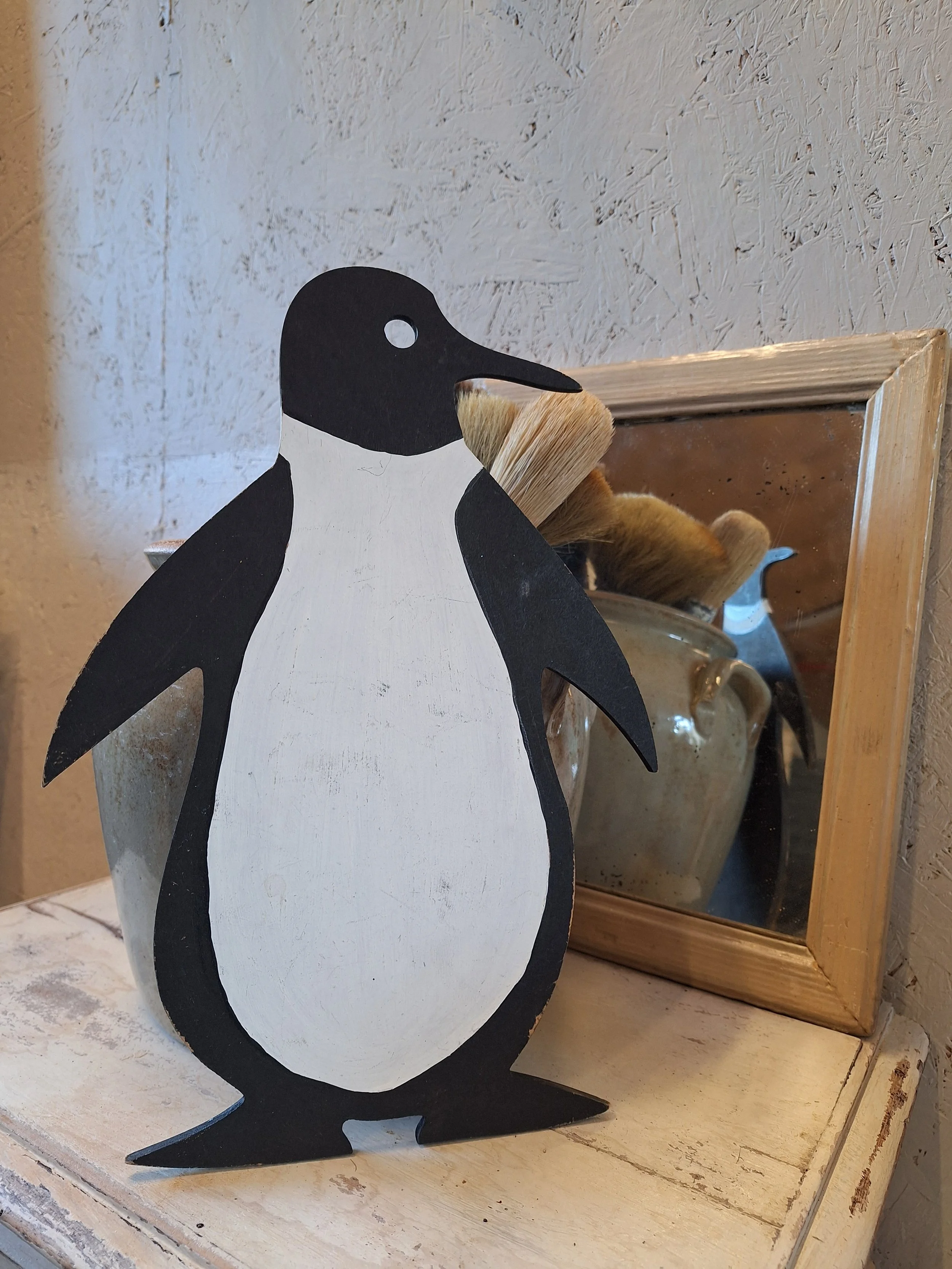 Found in France, this simple yet characterful penguin is painted in matt black and white, on a thing plywood type material. He stands 31.2cm tall.