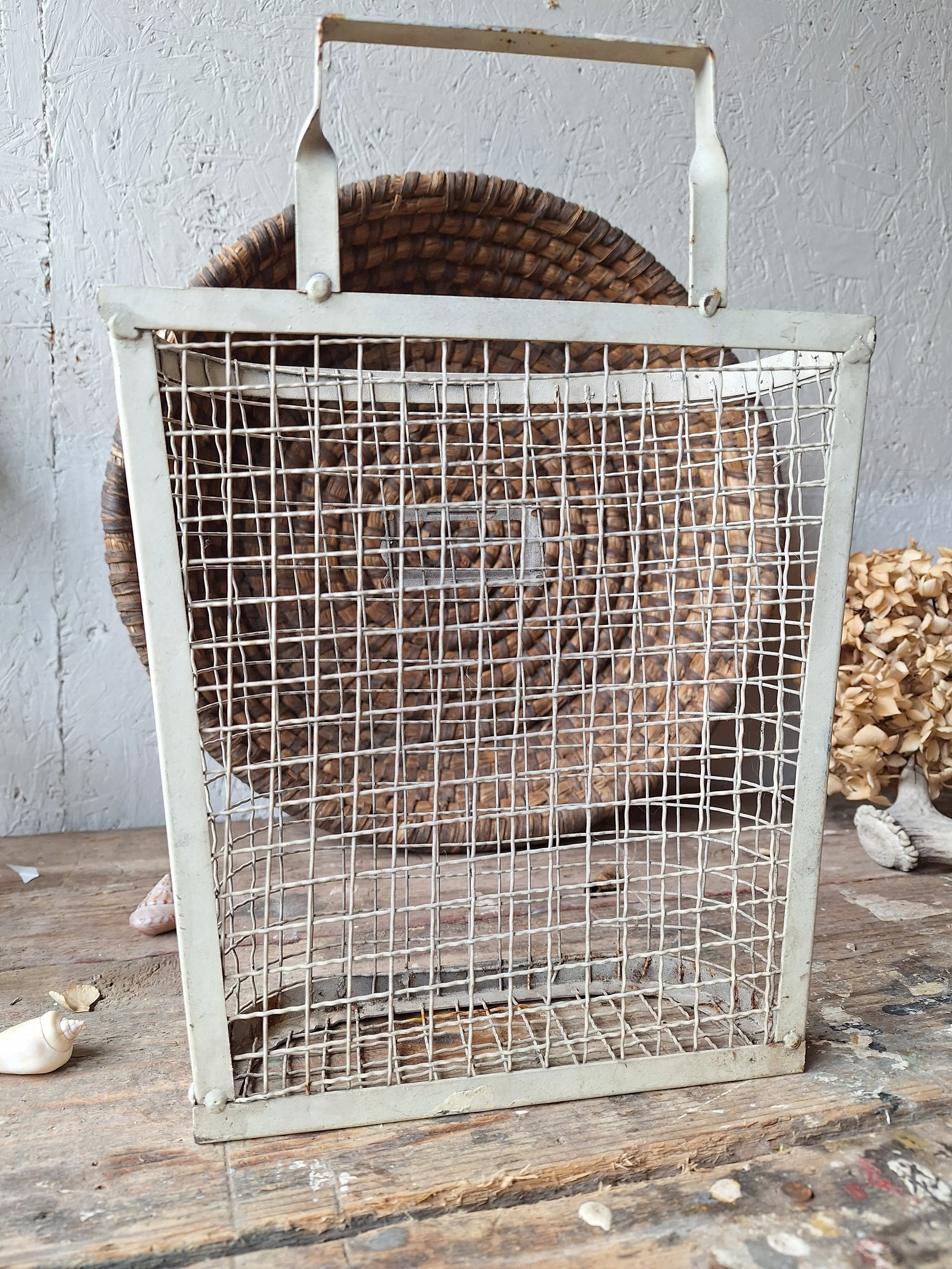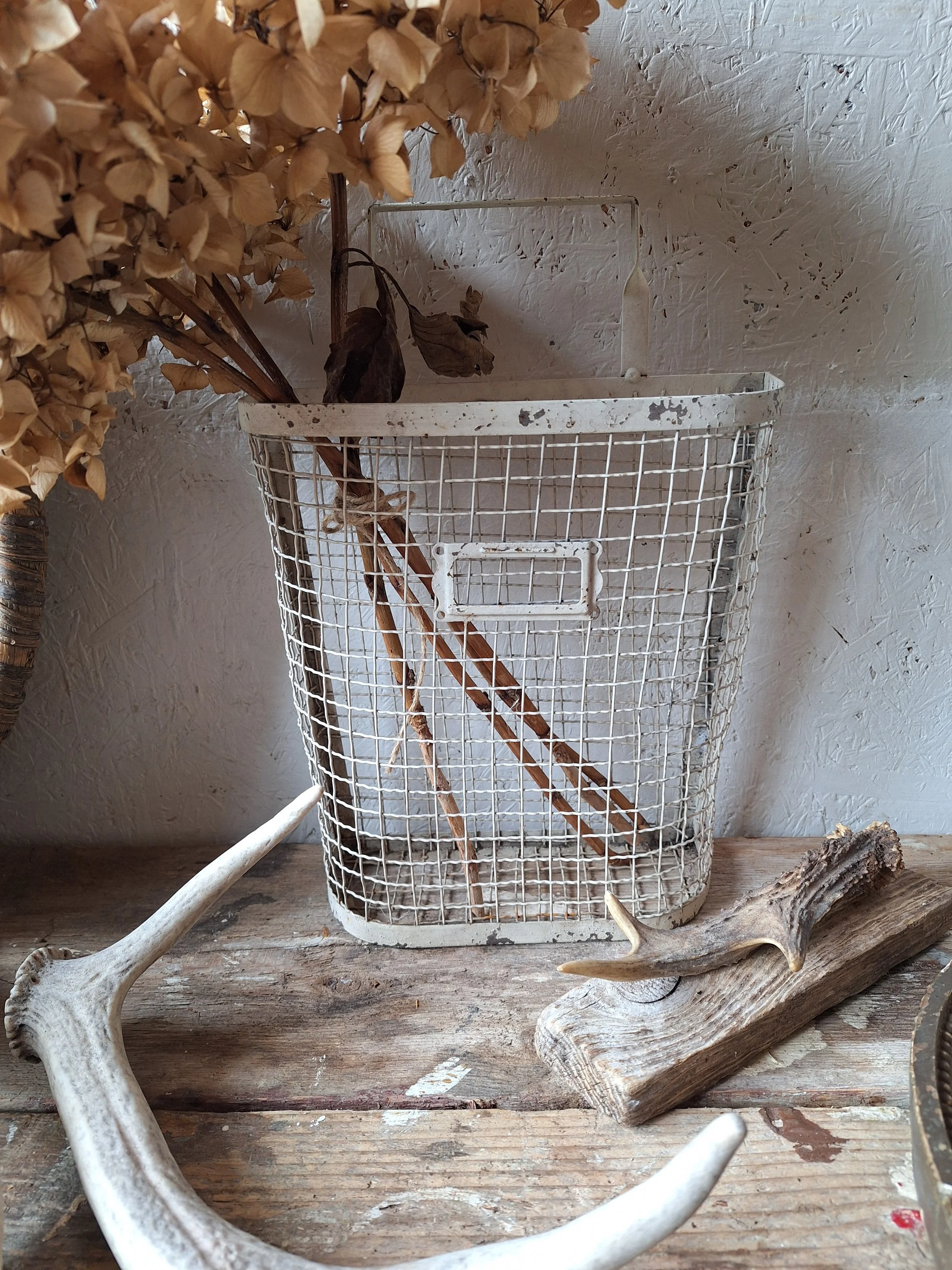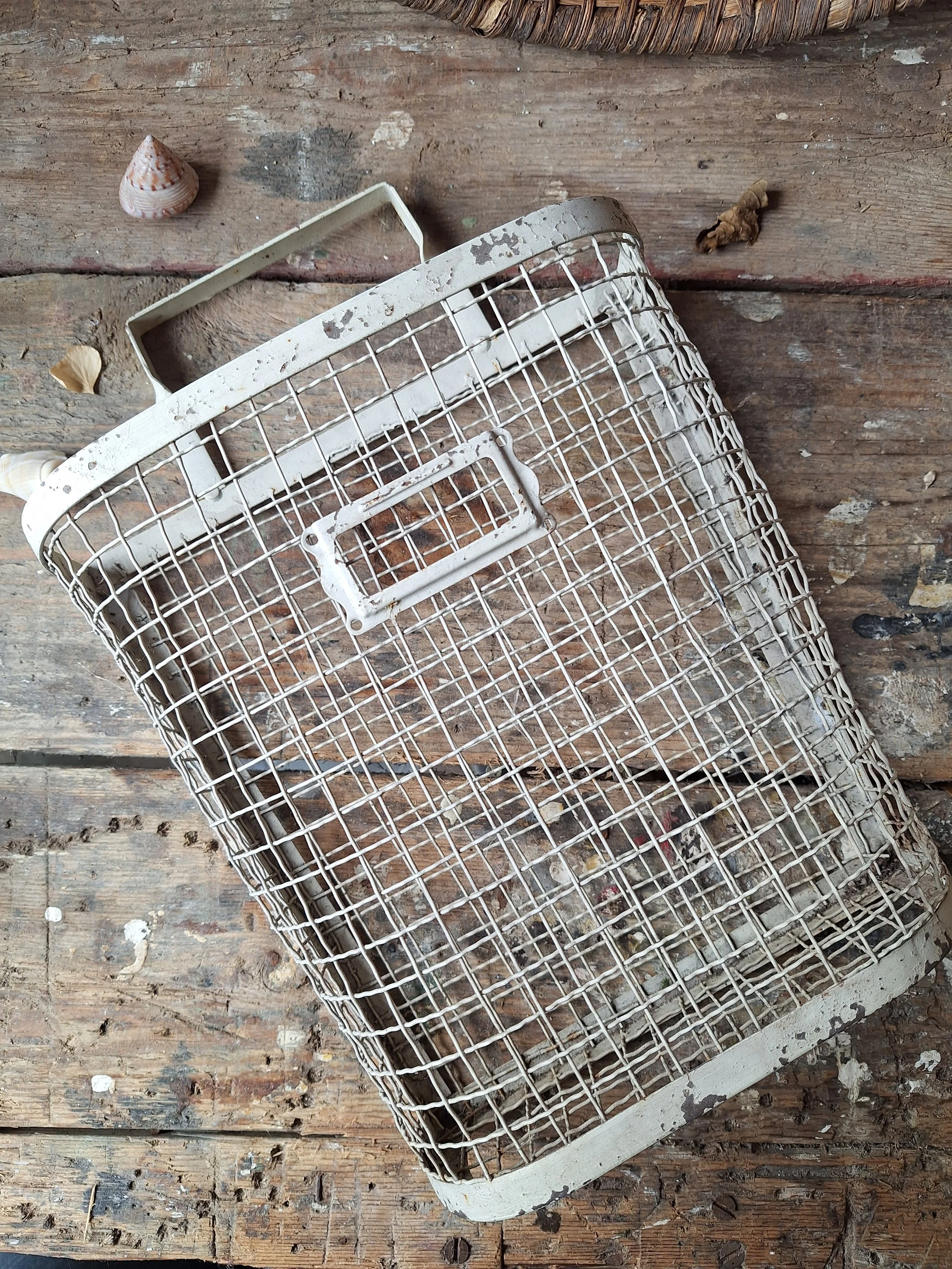 Little metal mailbox, doesn’t have much age, but does have a great look. This will look great hung in the hallway. The basket size height is 23cm and width 8.5cm. There is a handle to hang it.