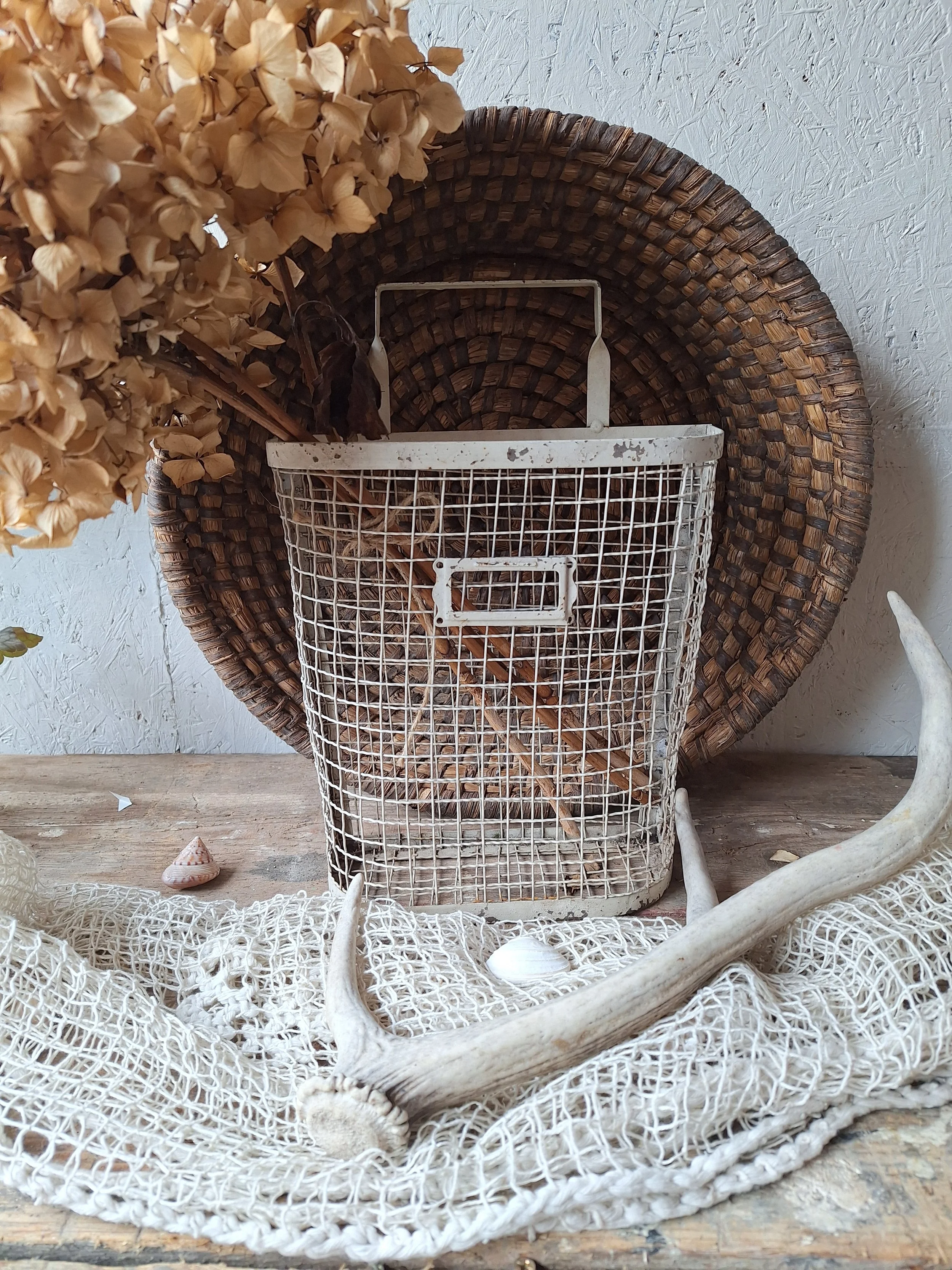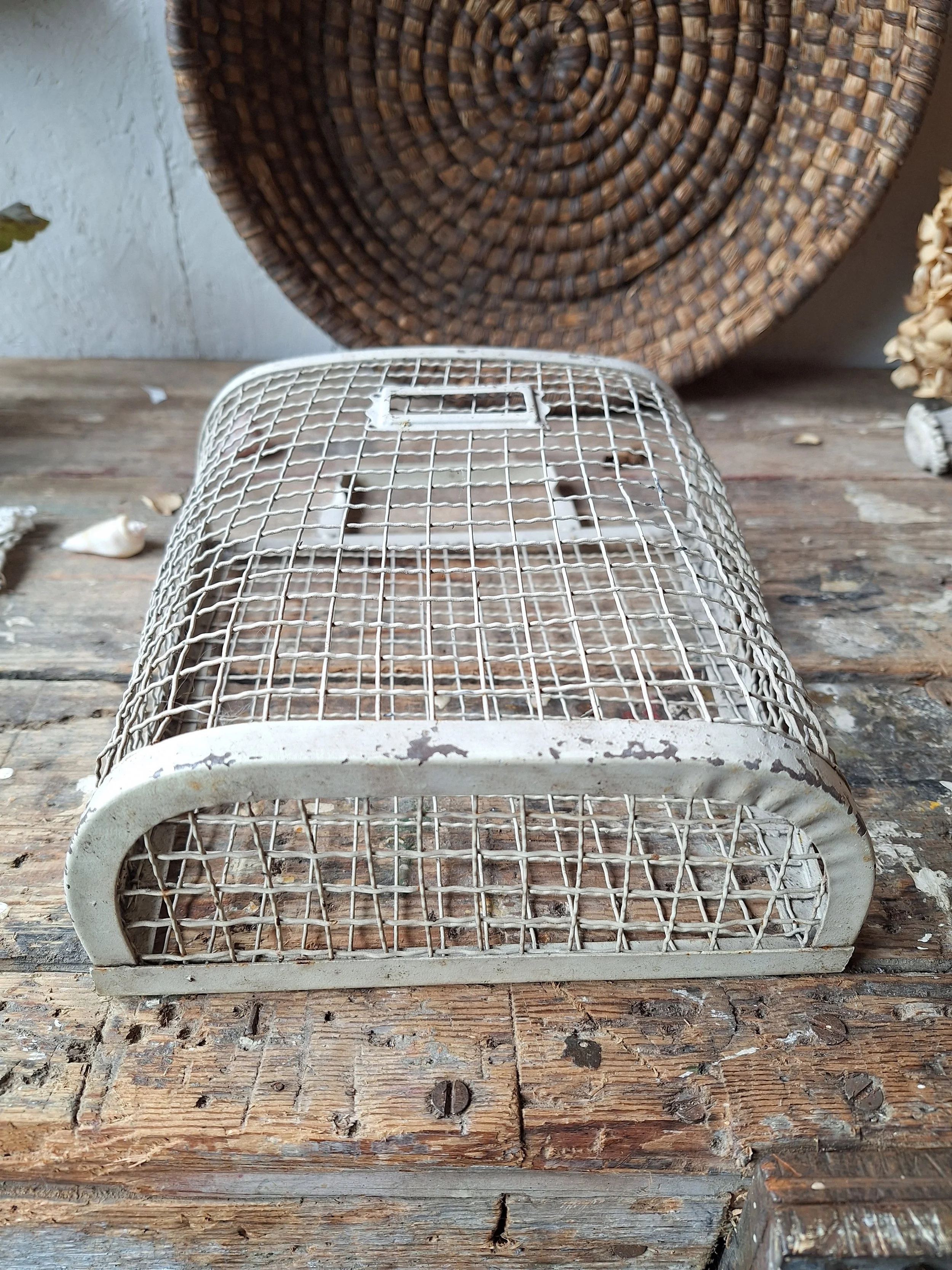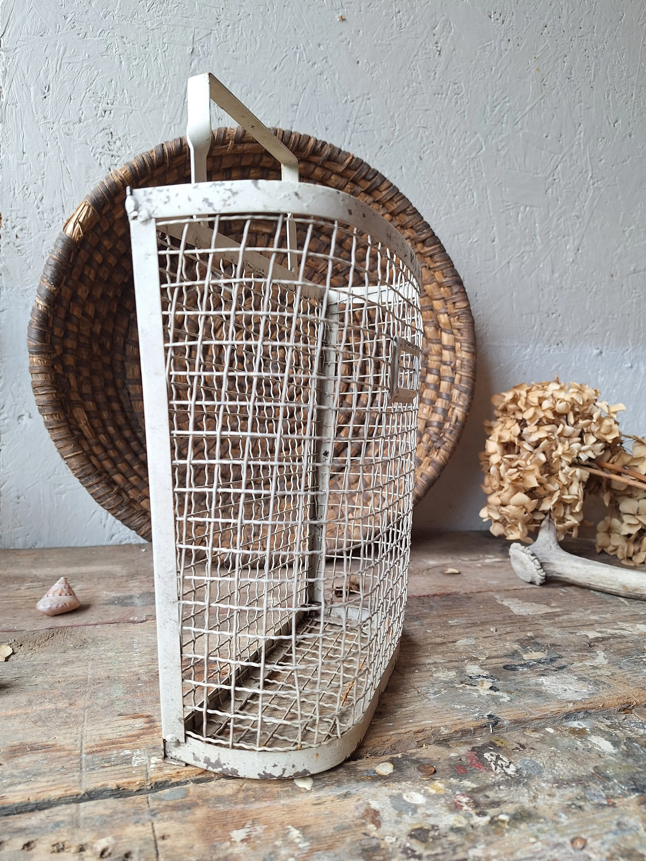 Little metal mailbox, doesn’t have much age, but does have a great look. This will look great hung in the hallway. The basket size height is 23cm and width 8.5cm. There is a handle to hang it.