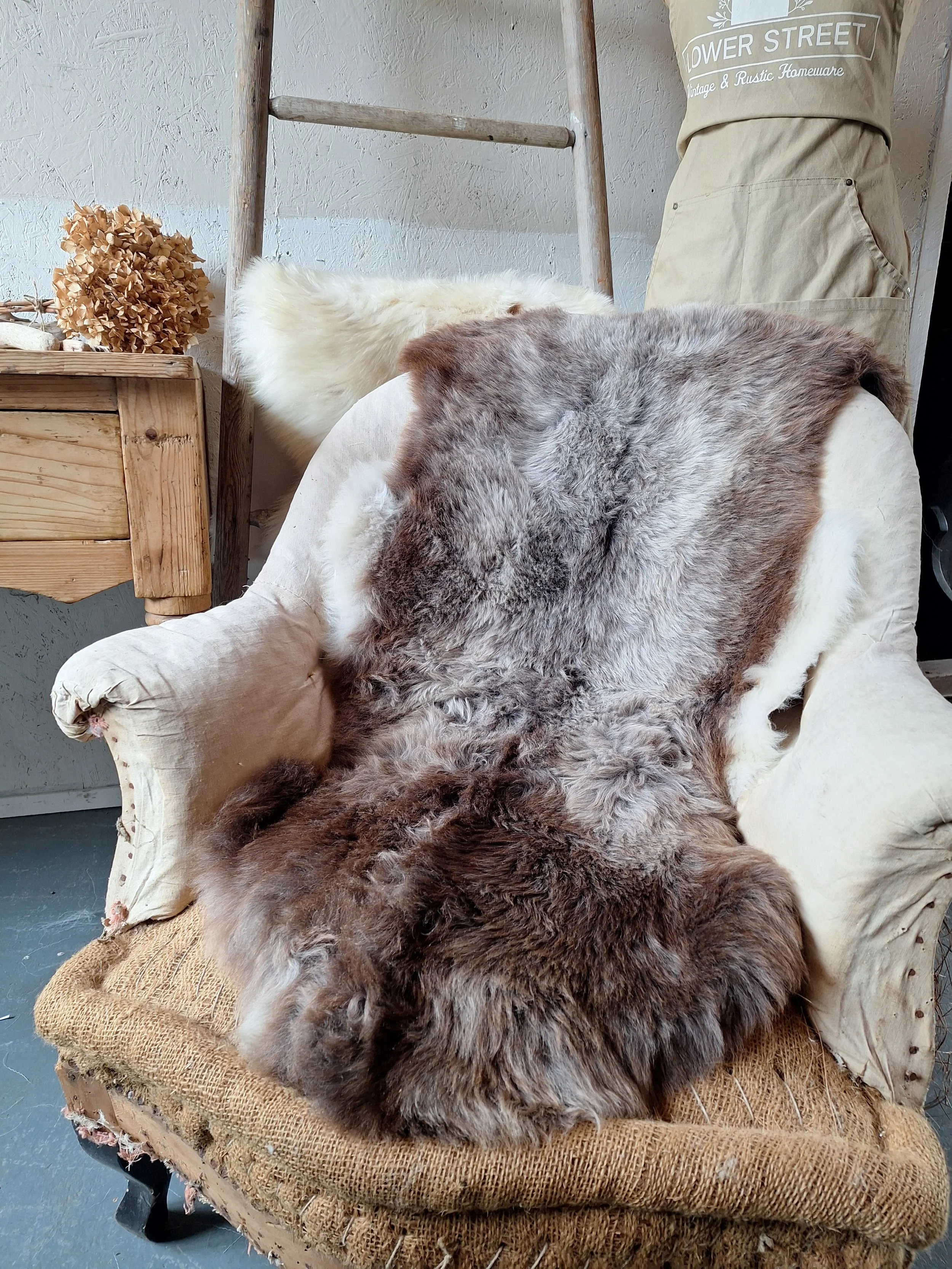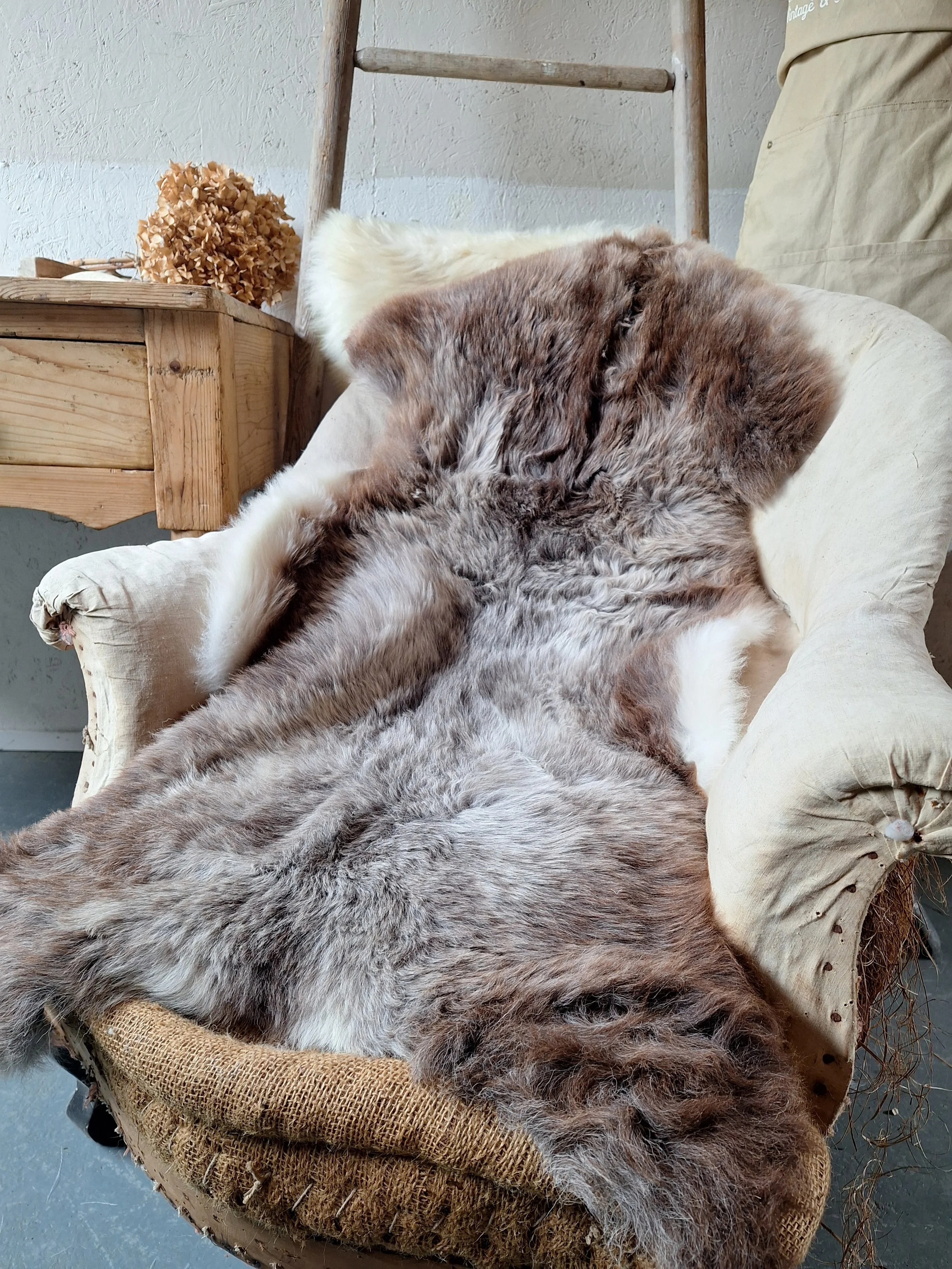 Beautiful natural sheepskin rugs Grade A sheepskins with no stitches, repairs or mends on the back. Perfect for rugs, sofa throws, chair pads, dining benches and pets! Hill sheep are natural coloured sheepskins with soft subtle natural breed markings. Typically slightly coarser and shorter denser wool than other sheepskins but the lovely soft subtle tones make these a beautiful sheepskin. There is a slight natural smell and shedding. The bench photo is an example of how you might use it, the one in the photo is not the sheepskin in this listing.