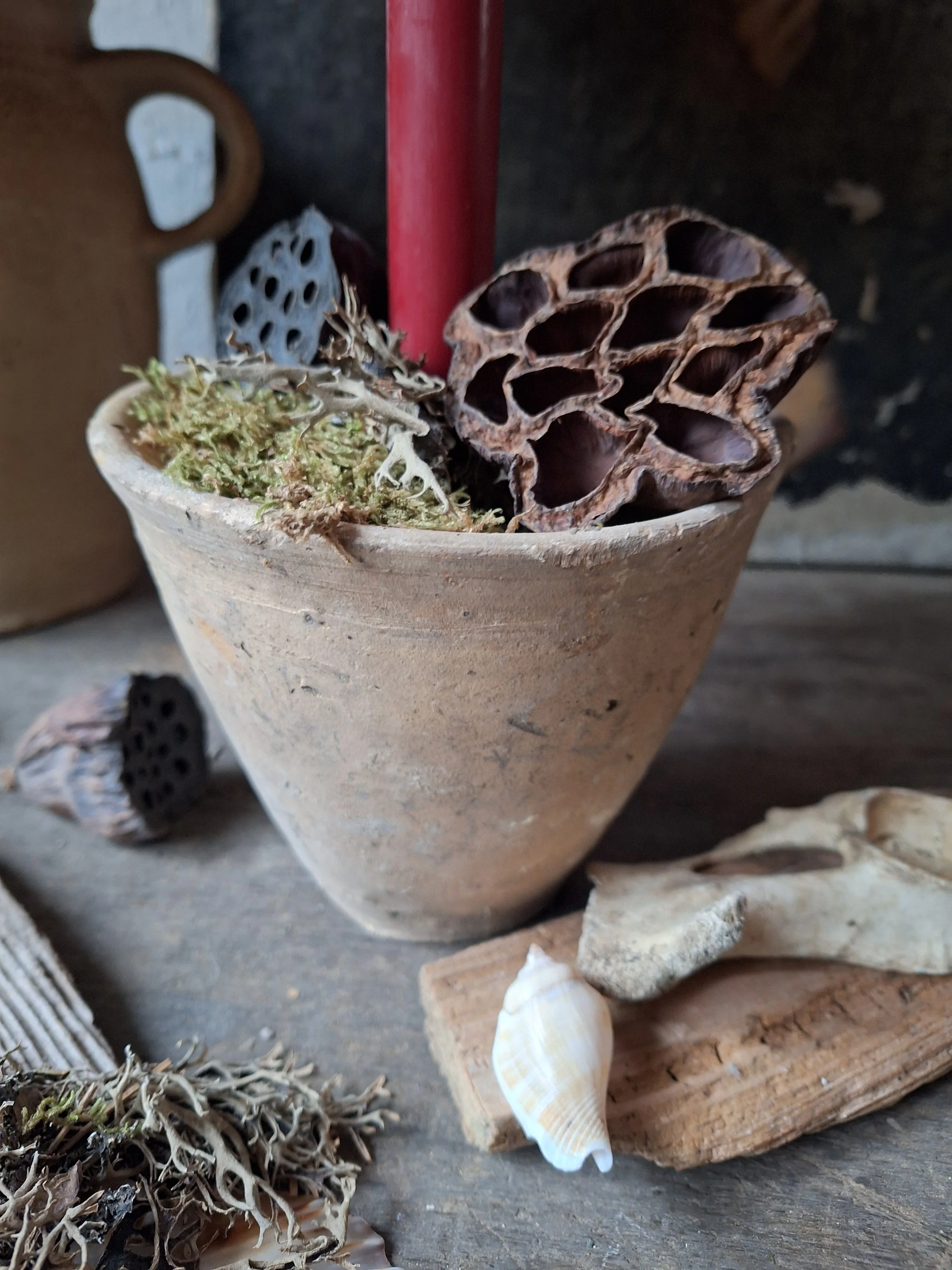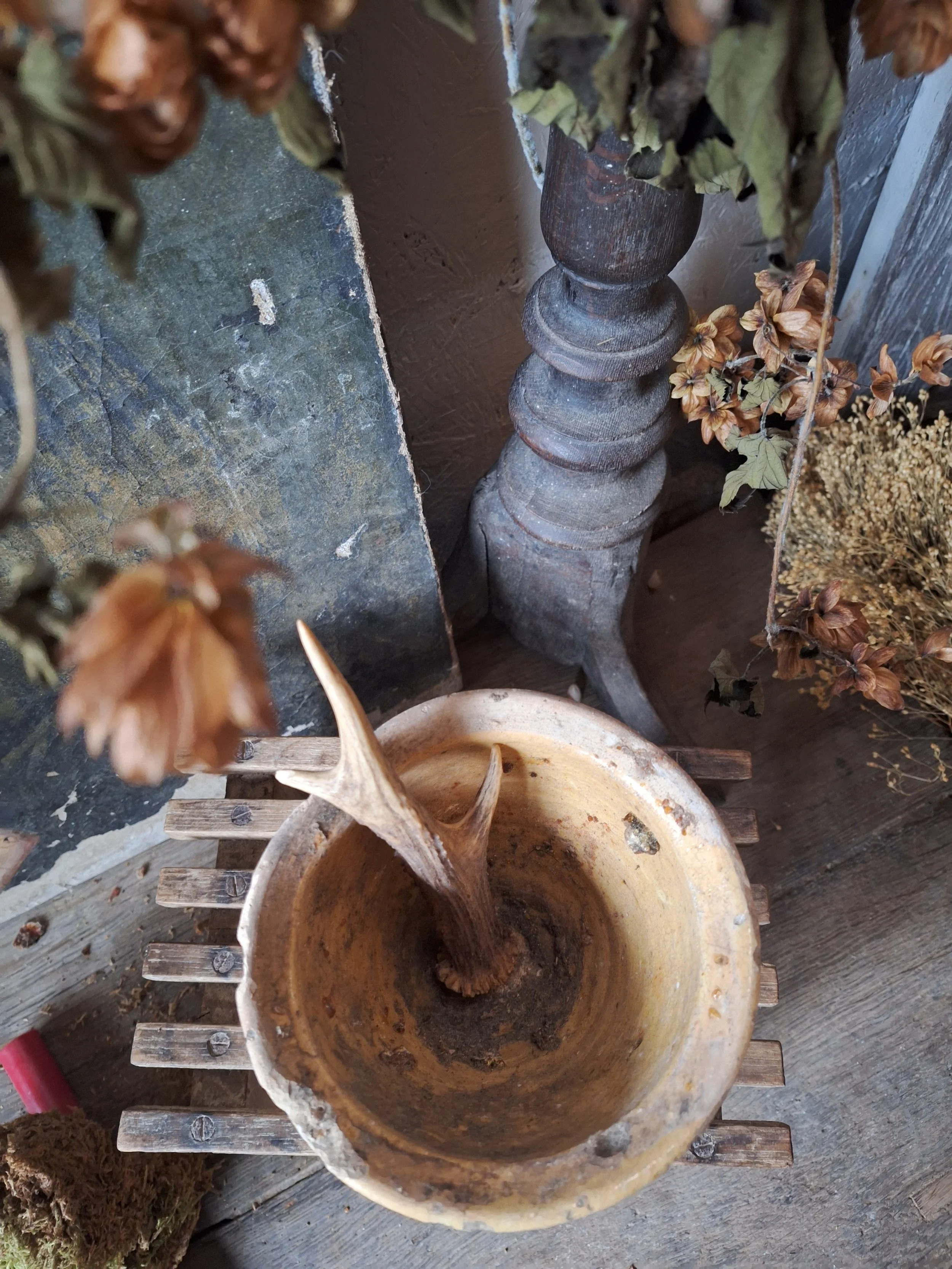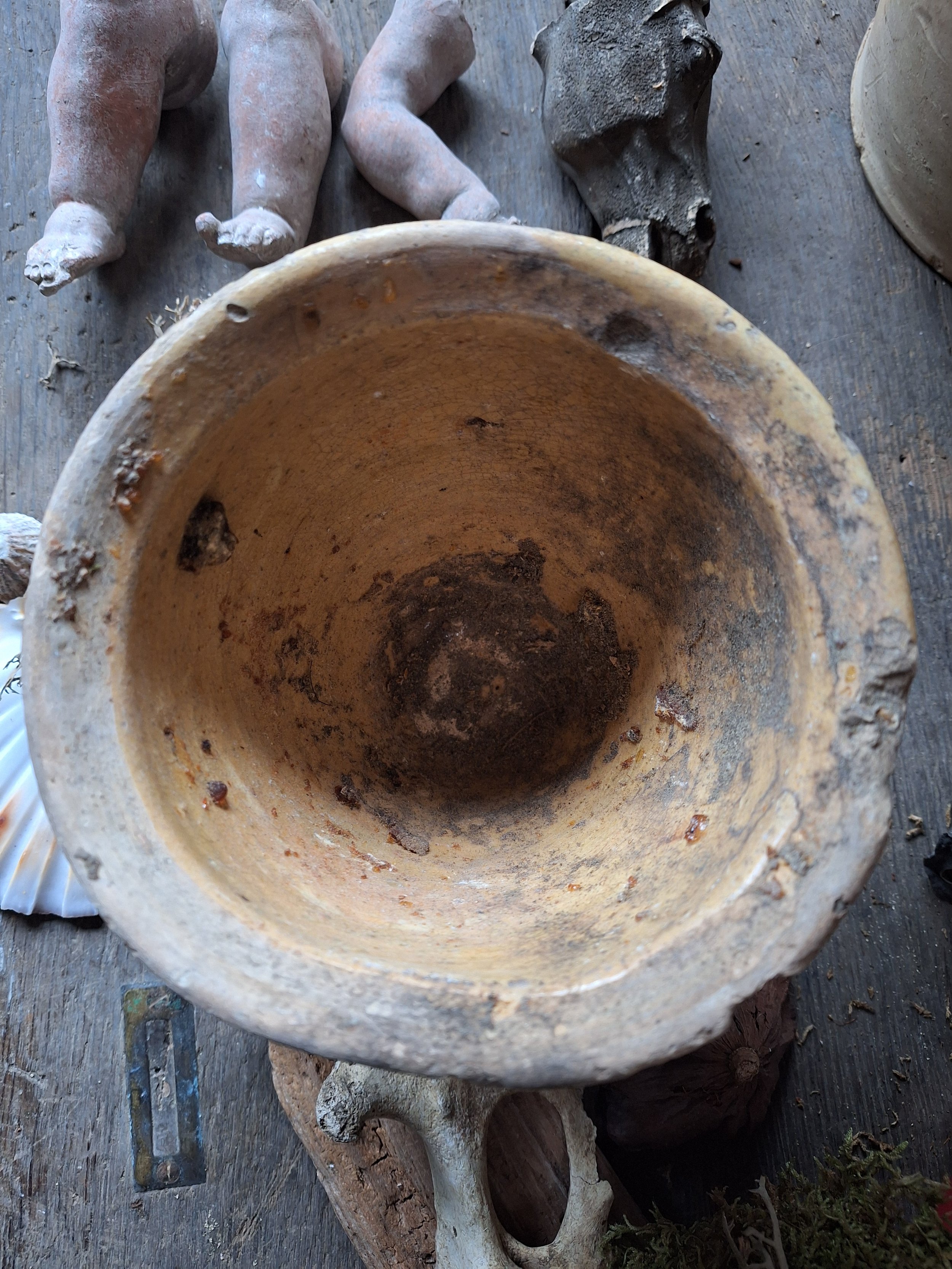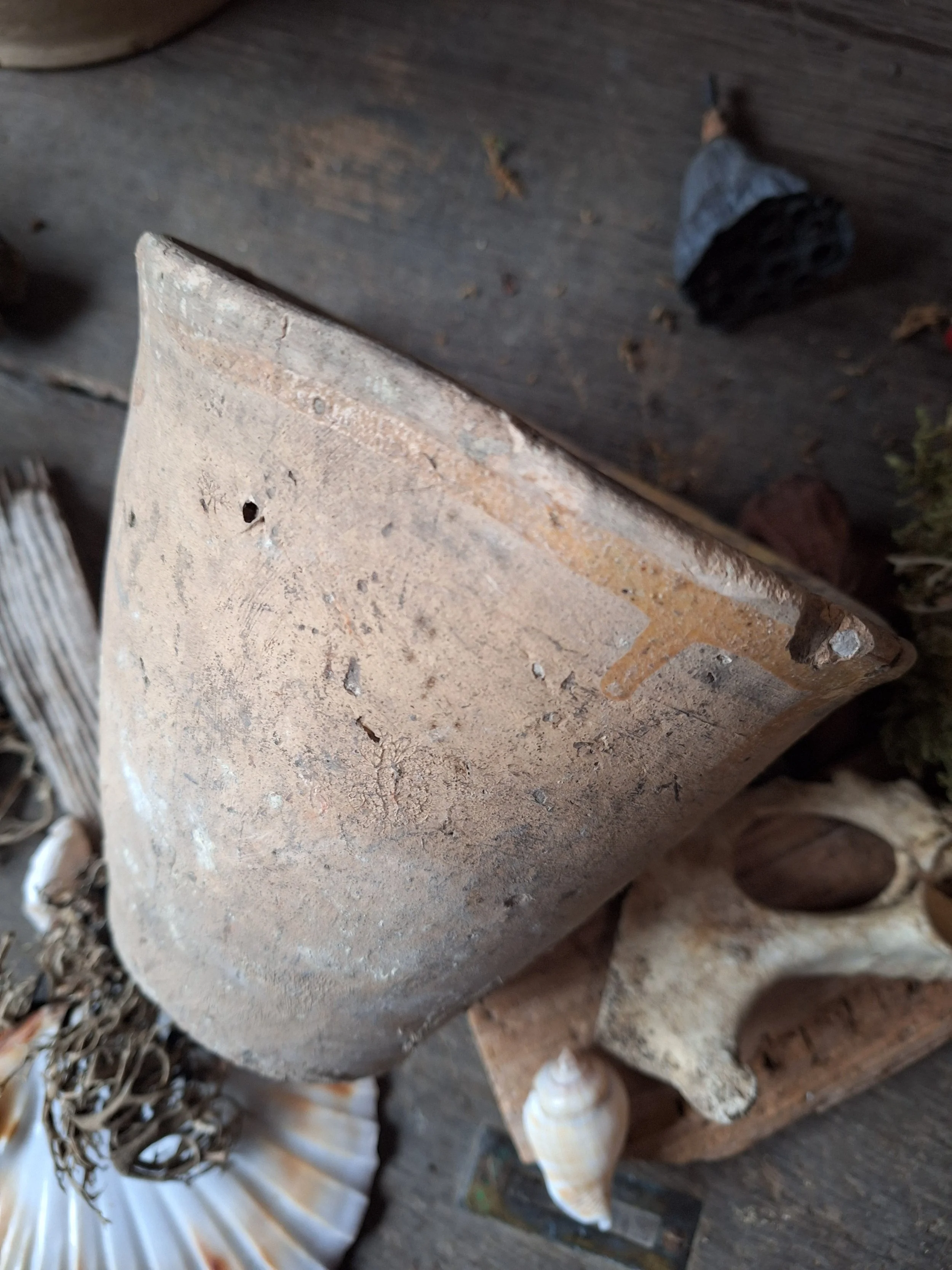 Lovely sap pot, with light yellow glaze inside. Small chip to rim. Height 11.5cm.