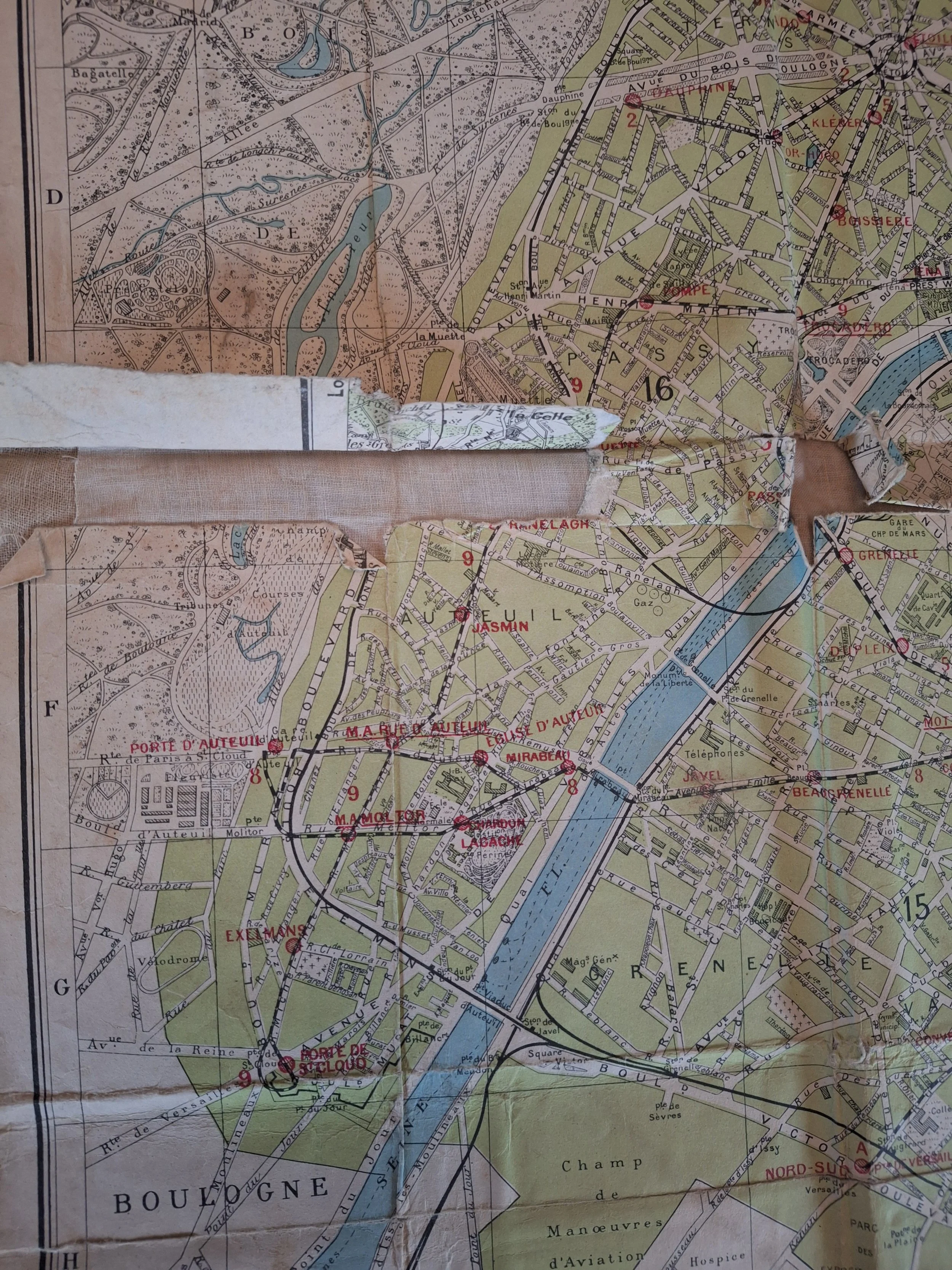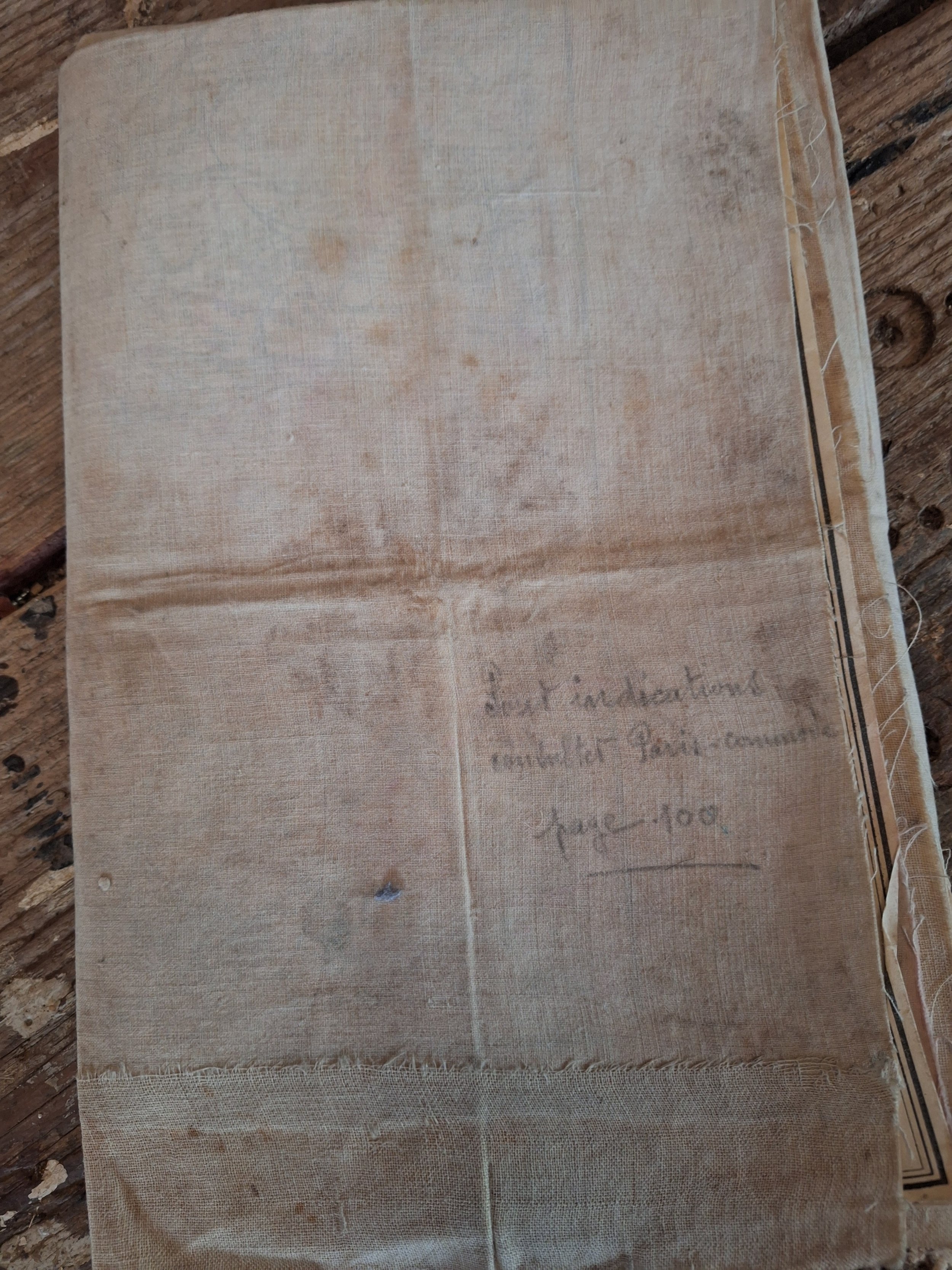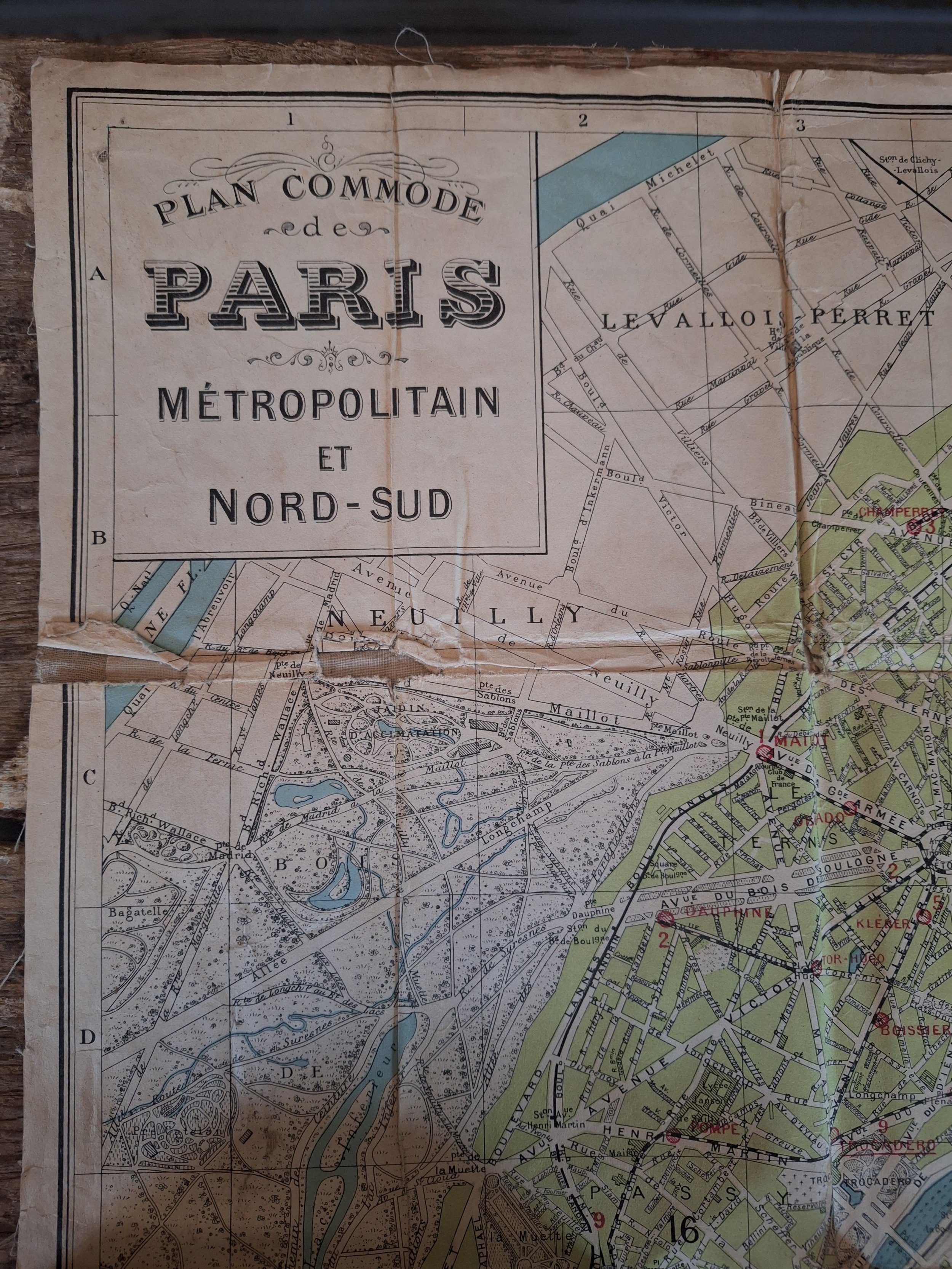 Lovely decorative folded map, on fabric. It is frail in places, you could fold down the raised parts and frame this nicely. Would look great mounted on the wall. Size approx. 68x52cm.