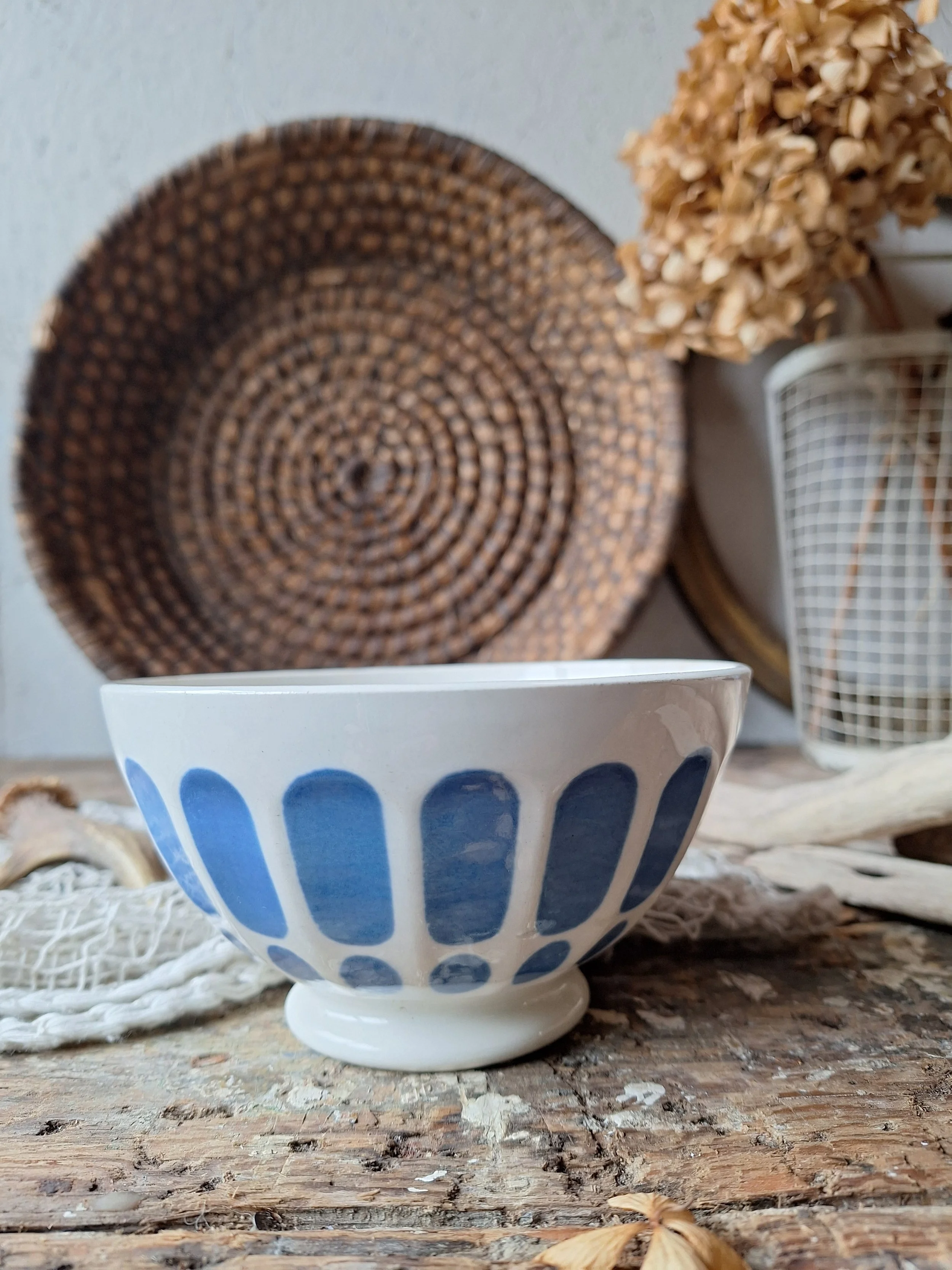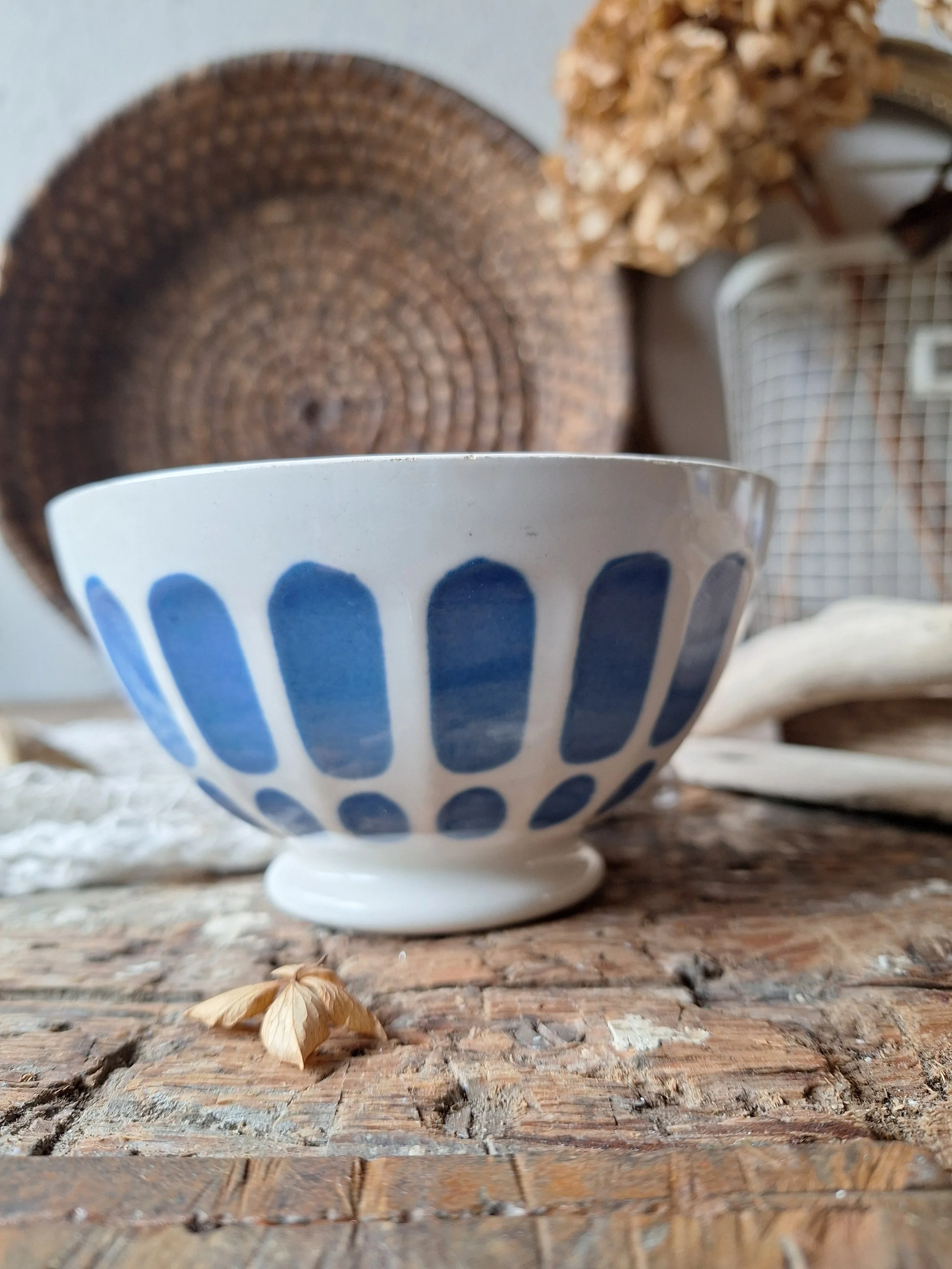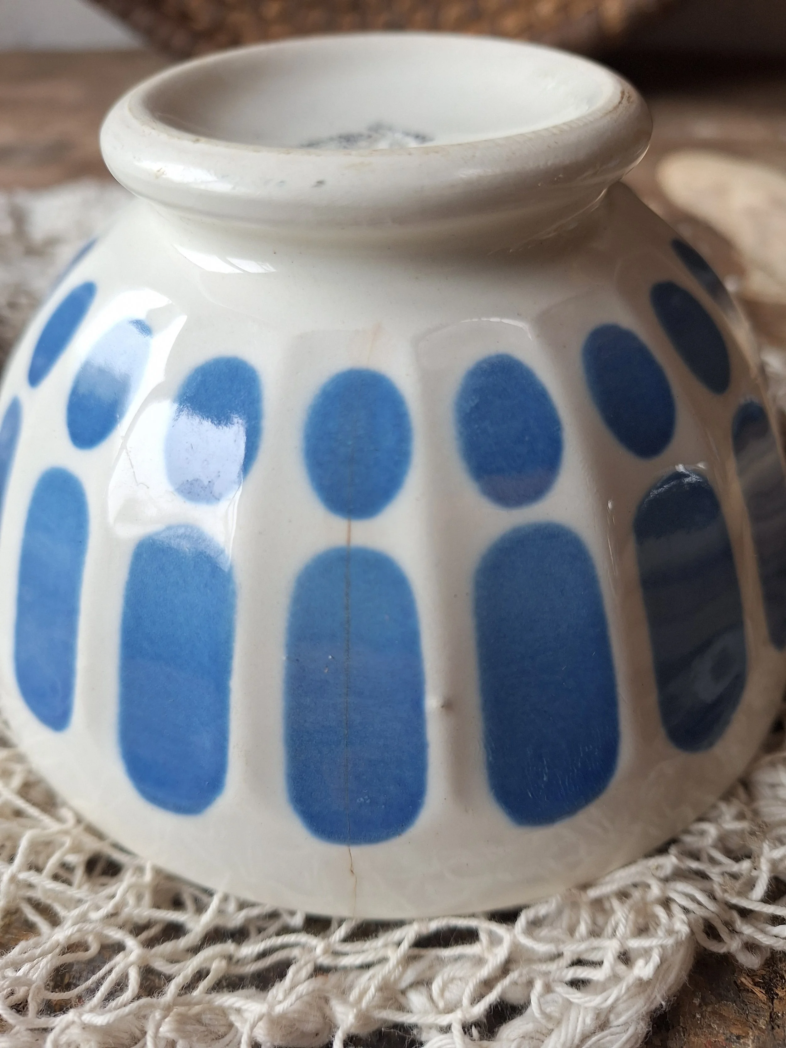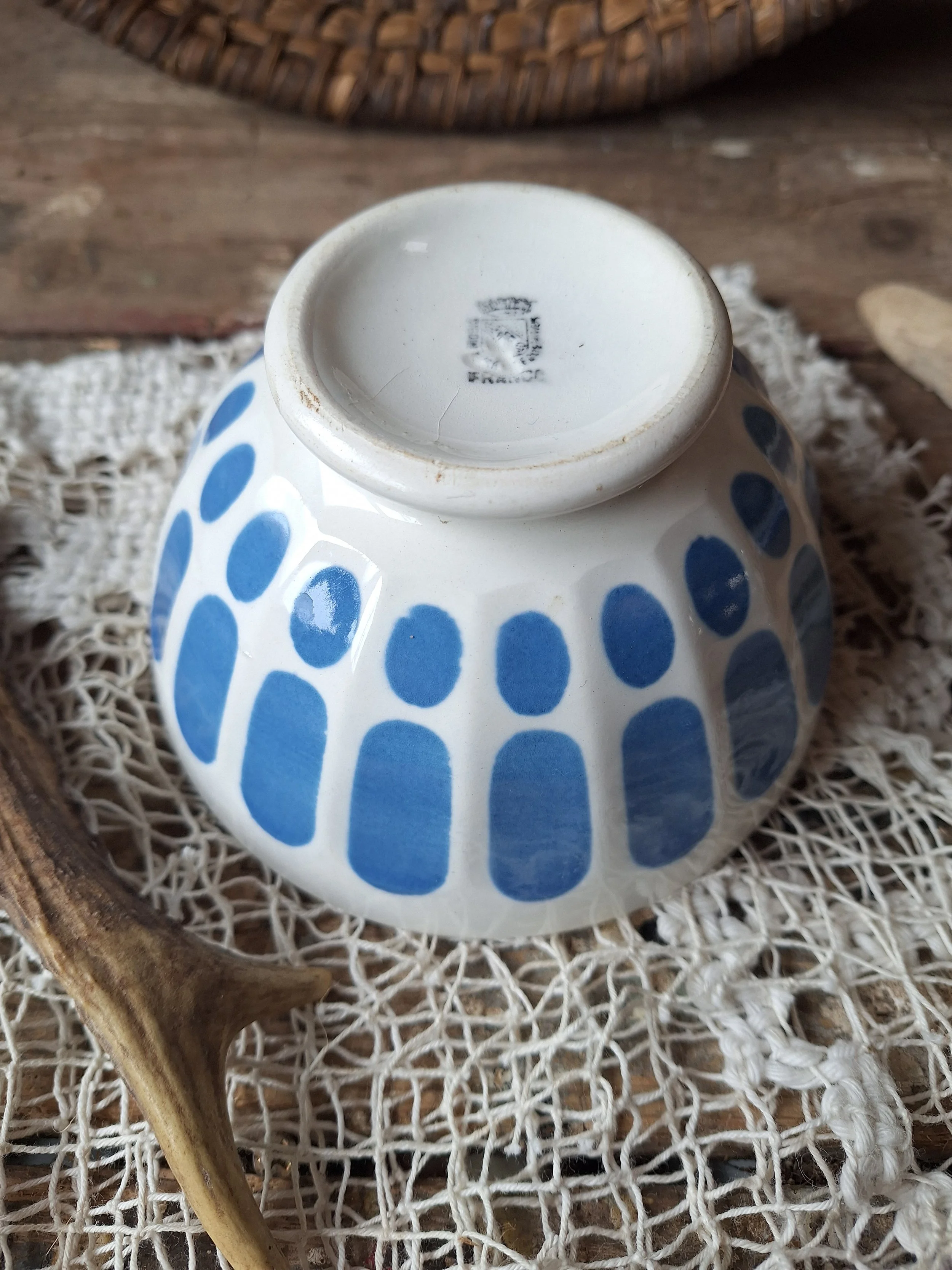 Lovely little blue and white French bowl, with hairline. Diameter 13cm. Height 7cm.